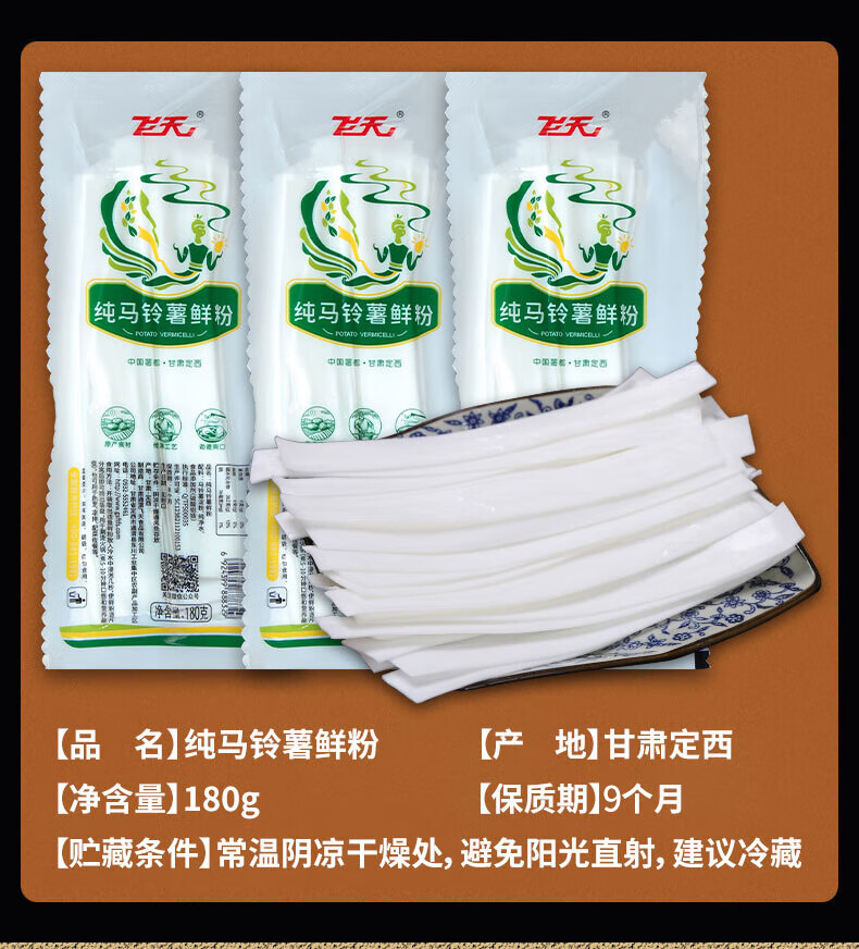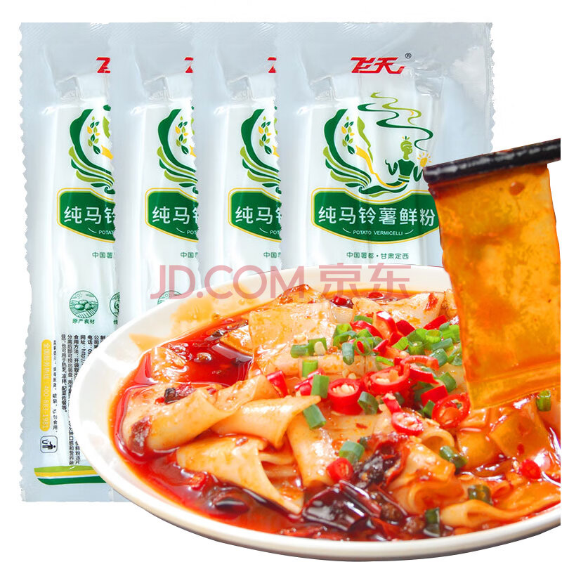 品贯飞天 纯马铃薯鲜粉(大宽)180g*4袋 甘肃定西流汁宽粉 天水麻辣烫