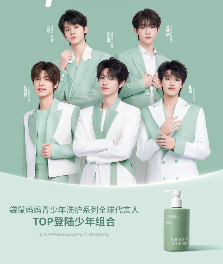 袋鼠妈妈青少年洗发水380ml*2 去屑控油蓬松儿童洗发露12-18岁青春期学生