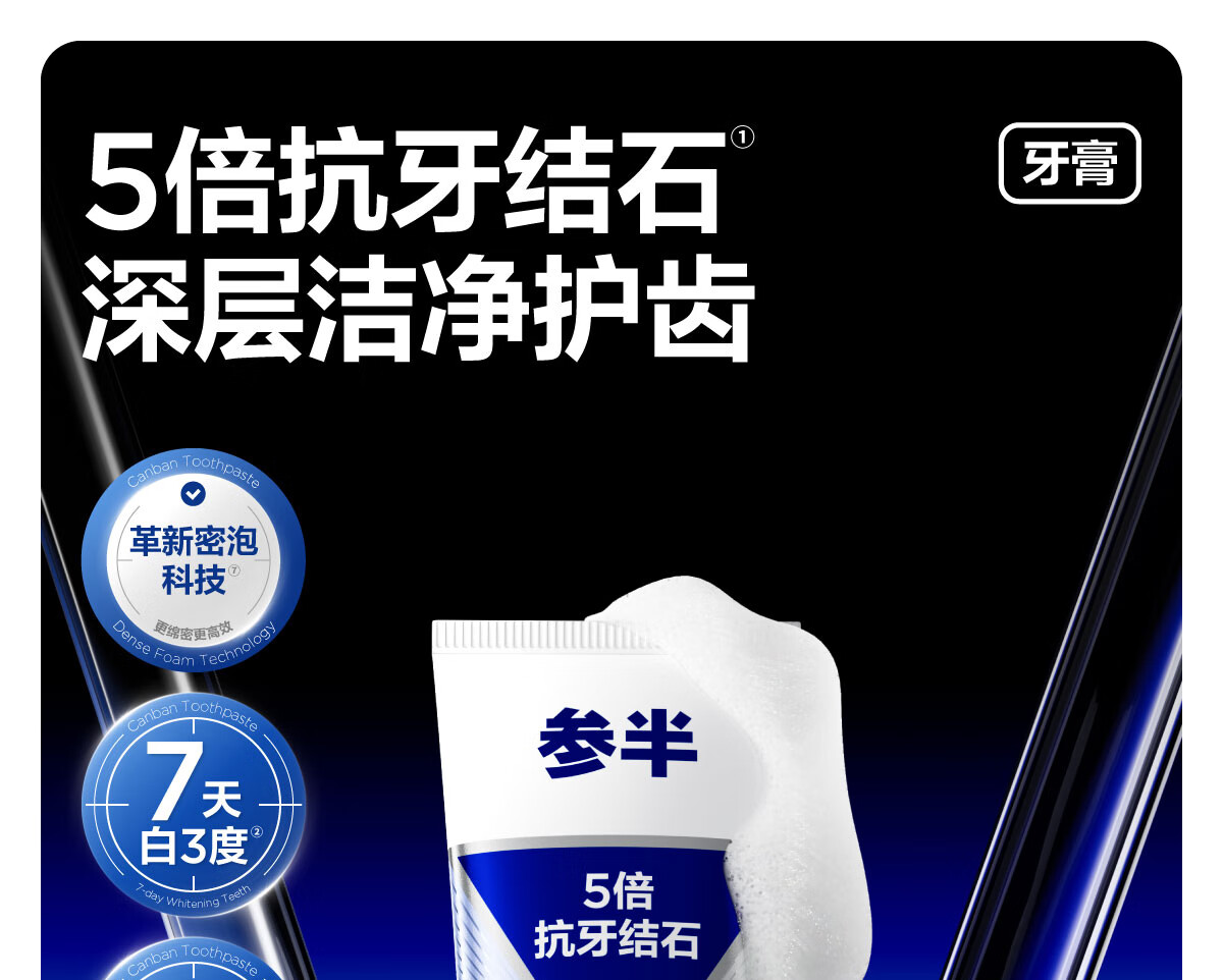 参半抗牙结石美白牙膏 专效抗牙垢结石亮白护龈去口气去牙渍100g*3