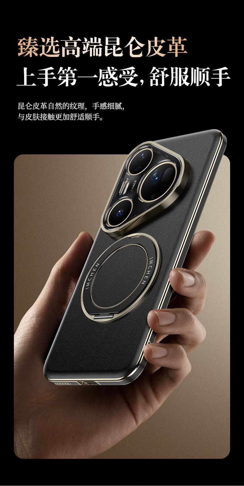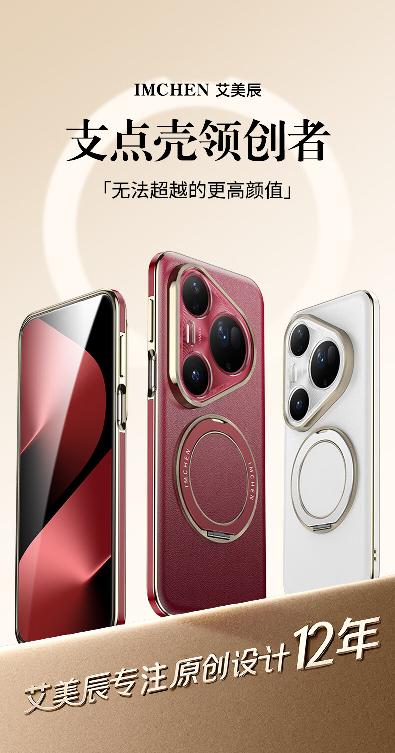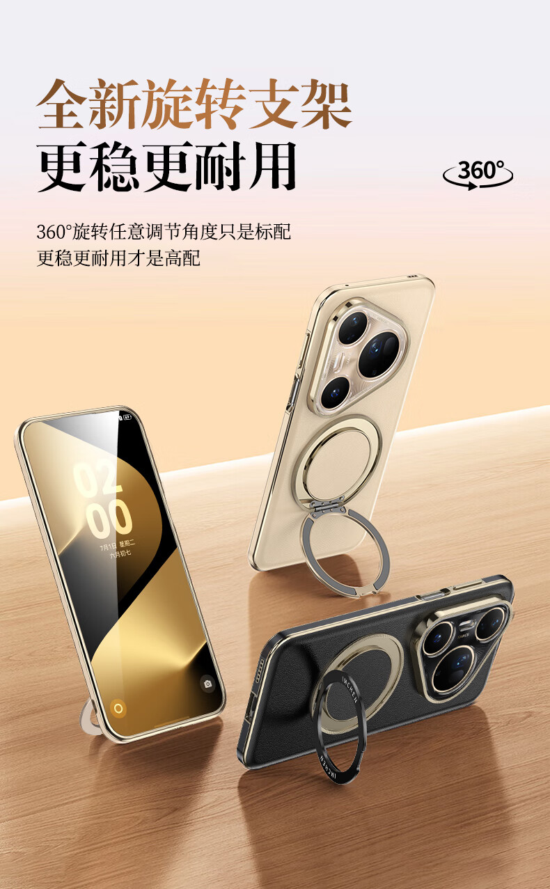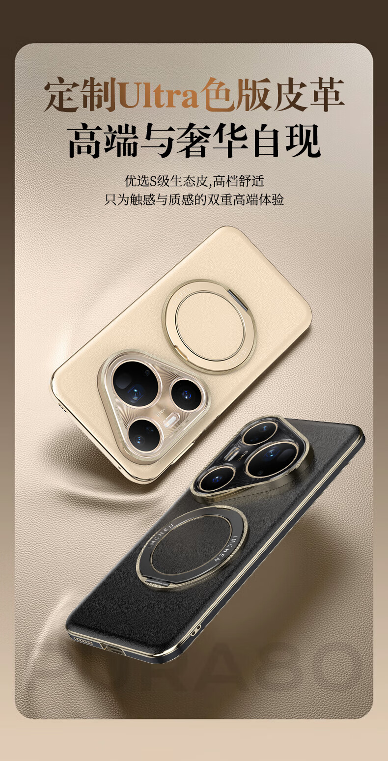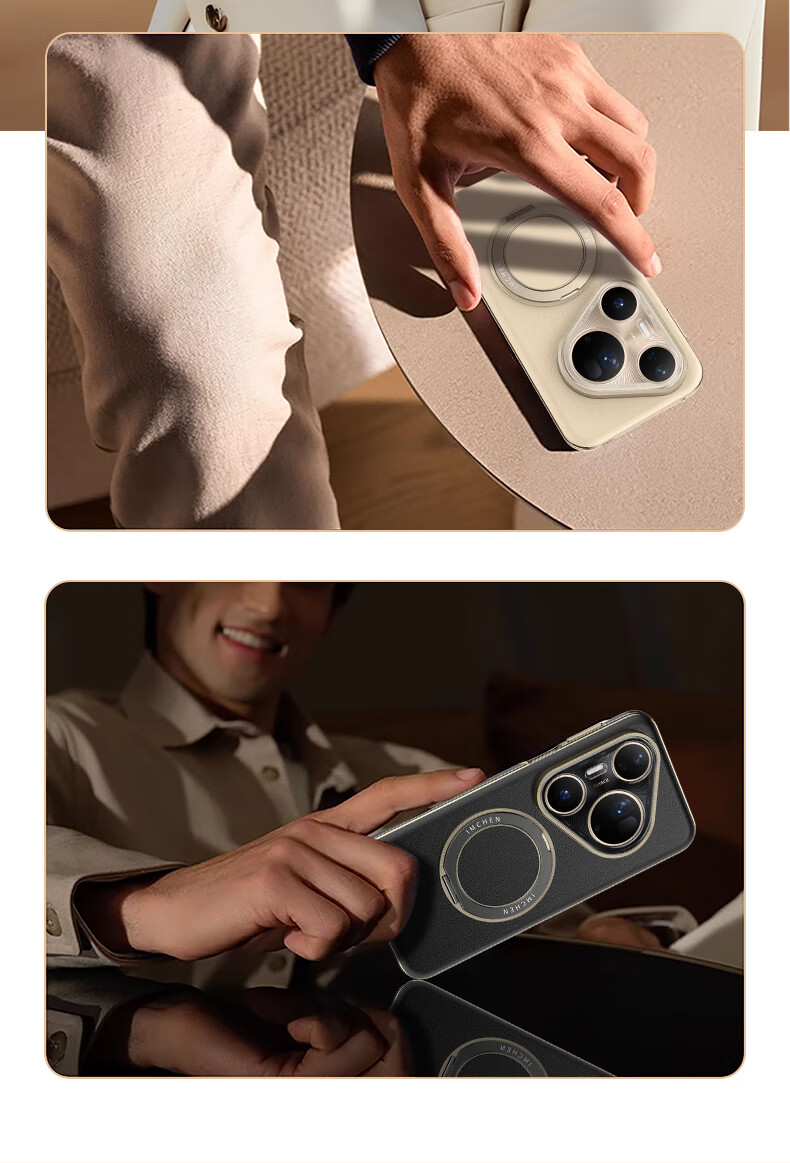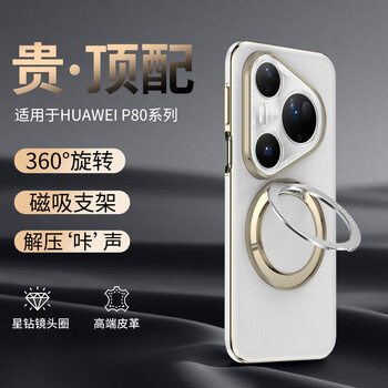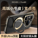 IM-CHEN【旋转支架真皮刺绣压纹】适用华为pura80pro手机壳 Pura80Pro+保护壳 全包镜头男女生超薄防摔-白