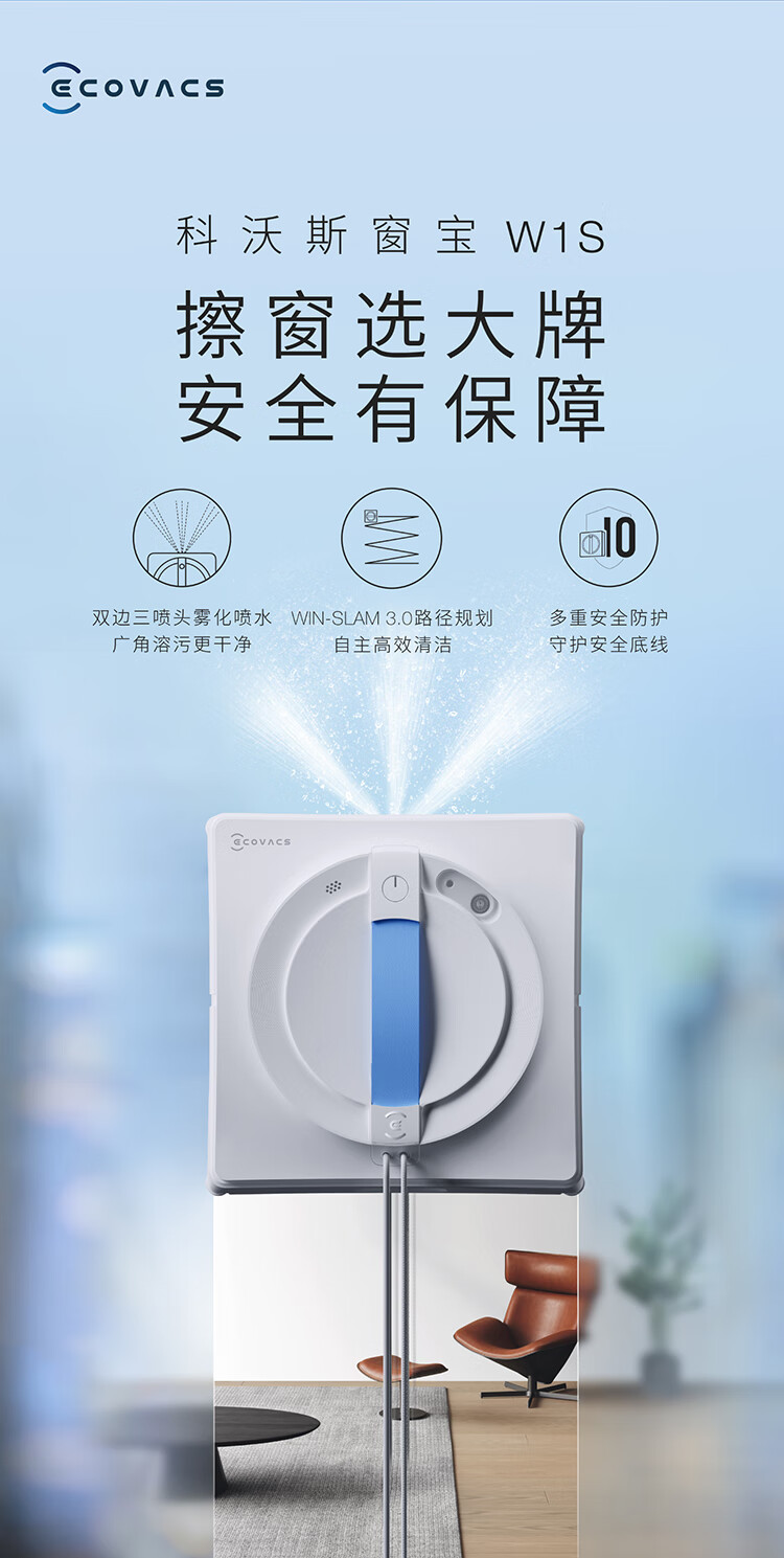 科沃斯擦窗机器人全新W1S升级版科沃斯擦玻璃机器人魔镜同款自动擦玻璃喷水恒湿擦窗家用高层户外擦窗