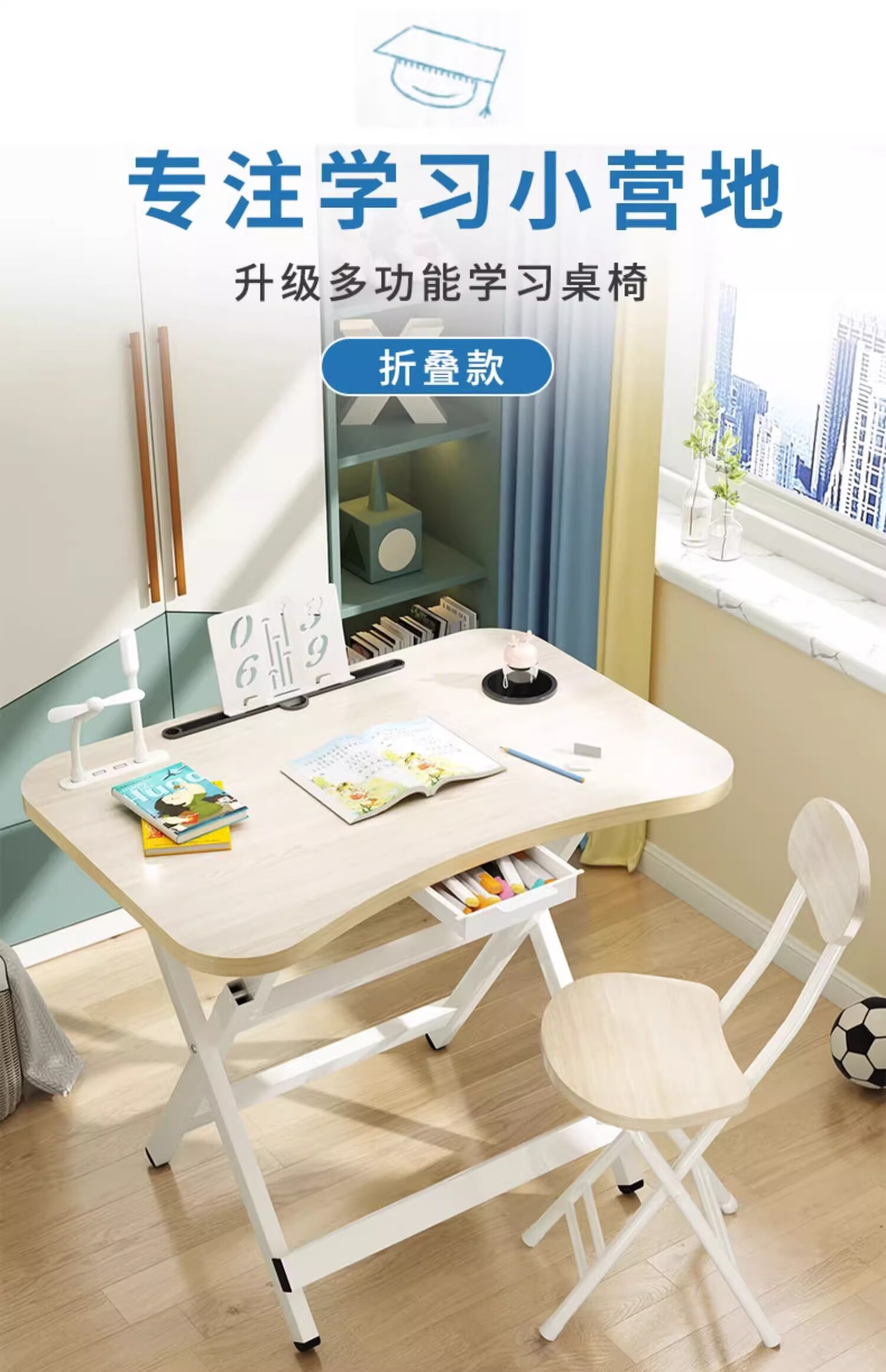 老竹匠可折叠书桌儿童书房电脑学习桌办公免安装家用卧室