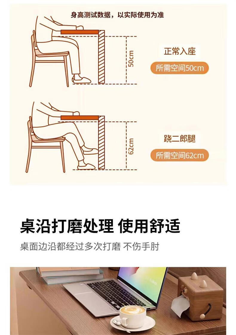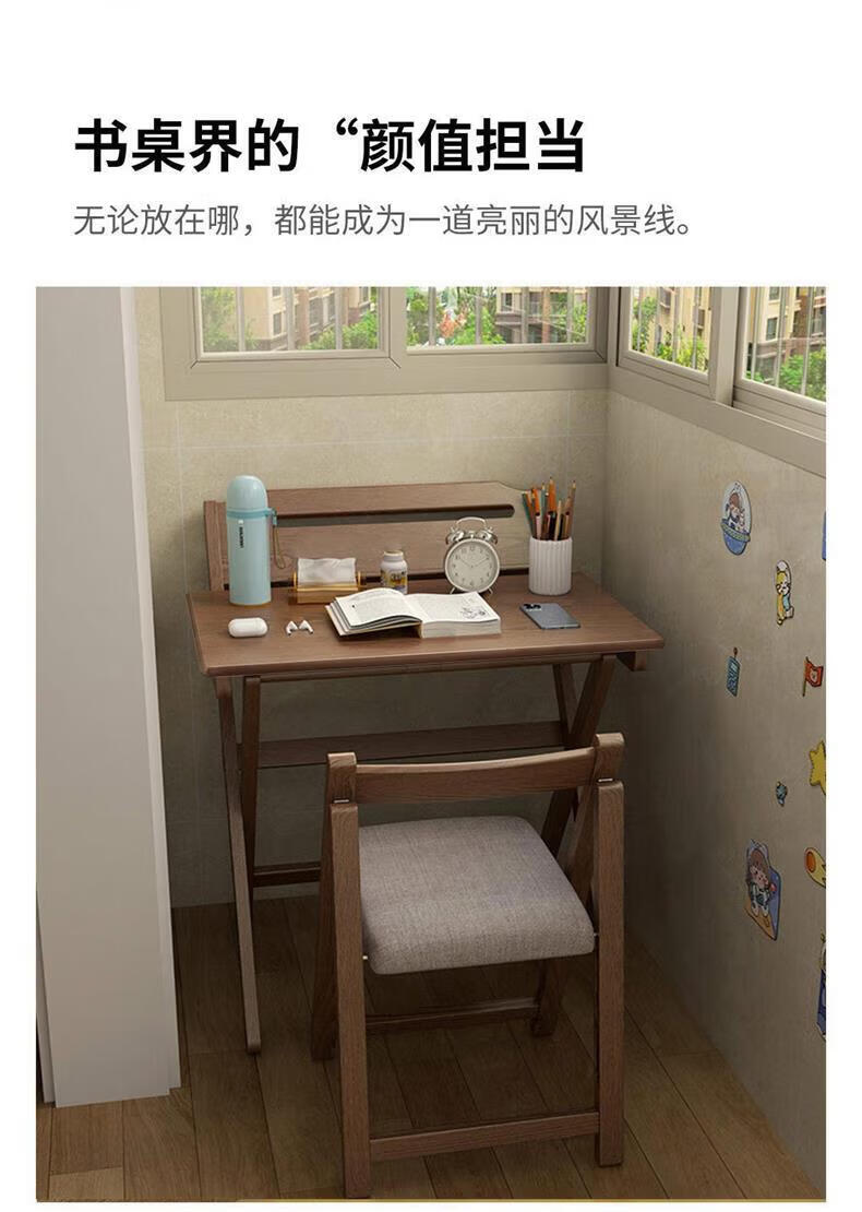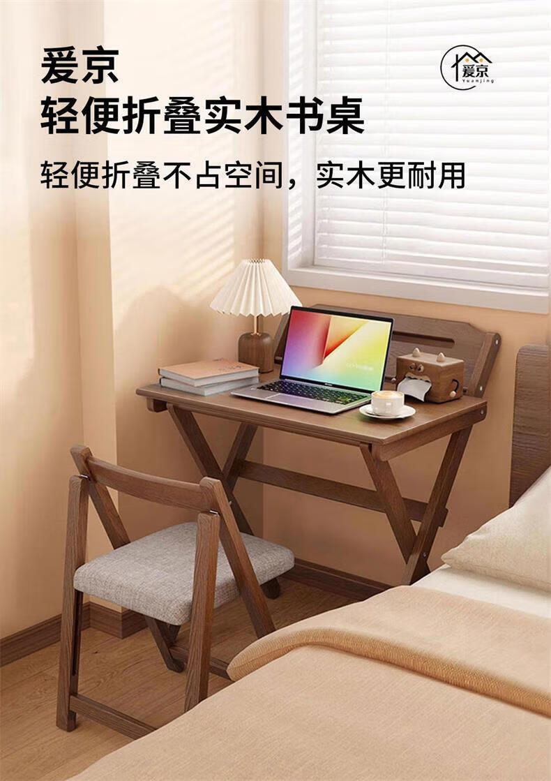 爰京实木书桌学习桌高度四挡可调节折叠写字桌书桌小户型
