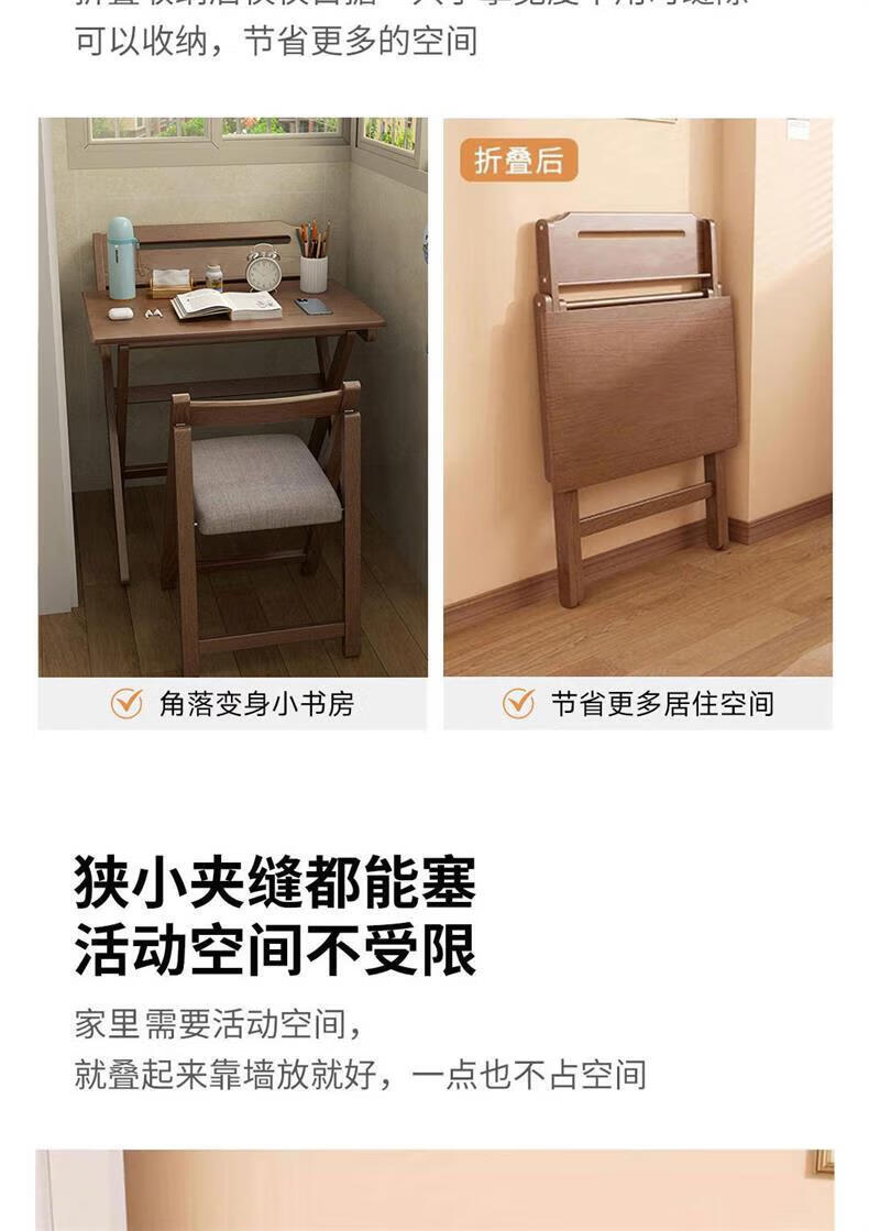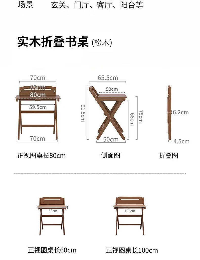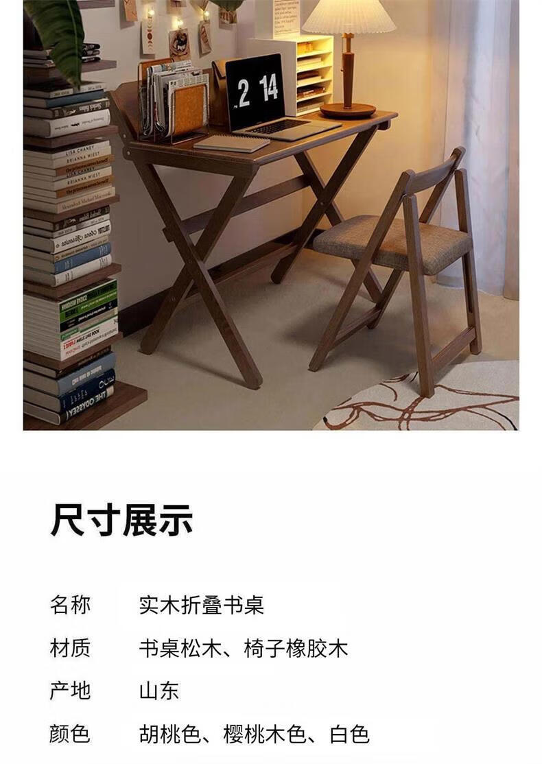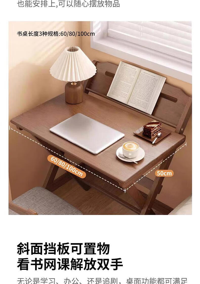 爰京实木书桌学习桌高度四挡可调节折叠写字桌书桌小户型家用办公桌80