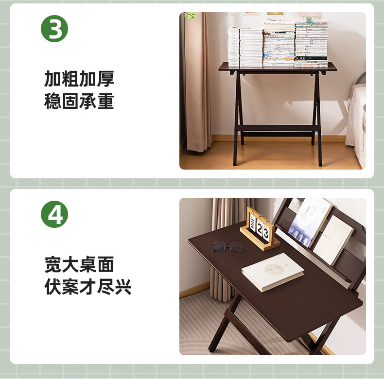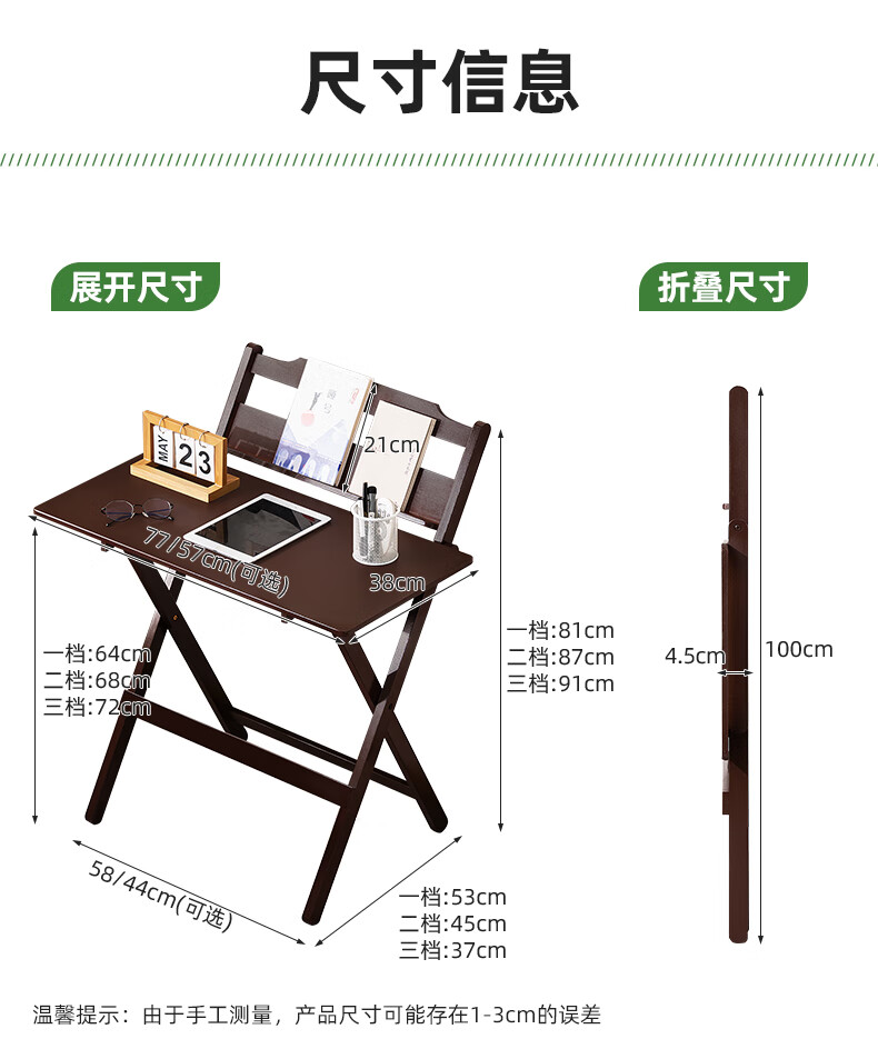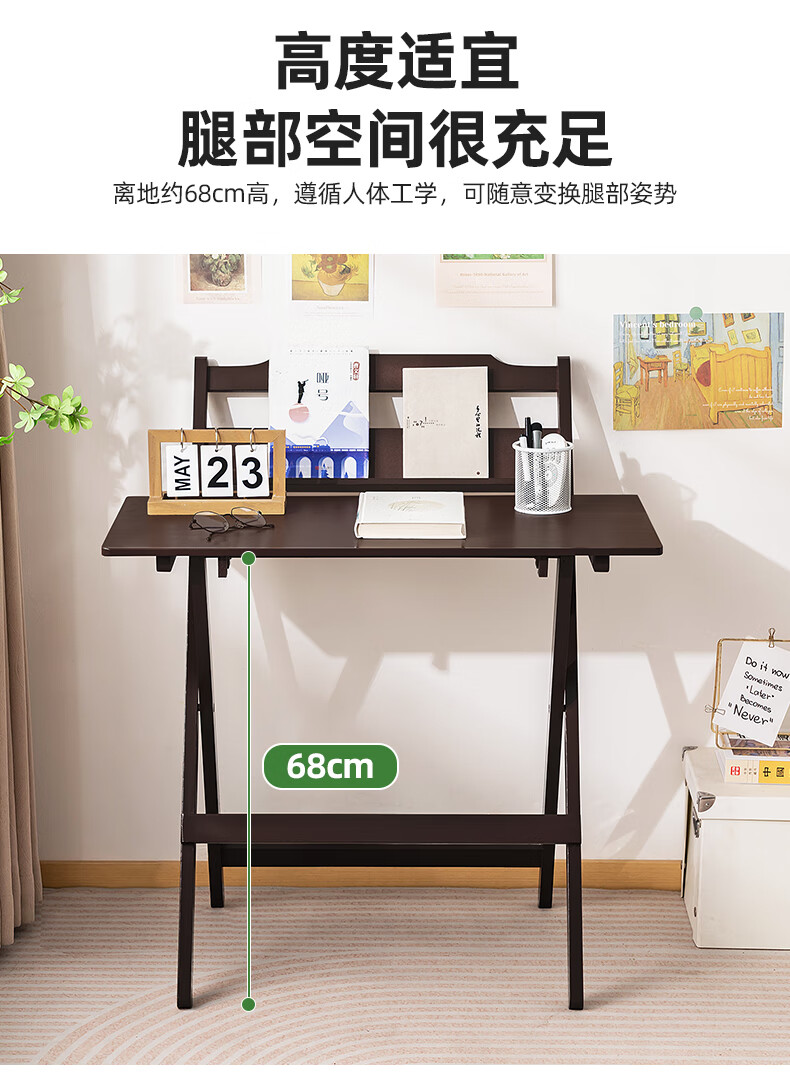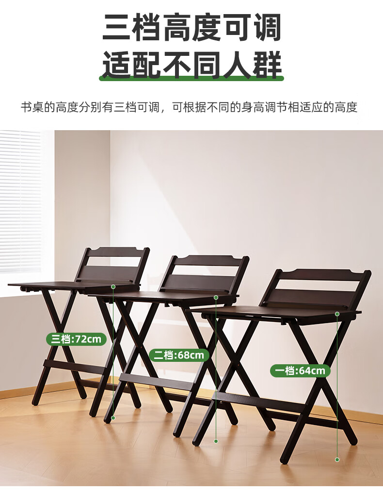 爰京实木书桌学习桌高度四挡可调节折叠写字桌书桌小户型