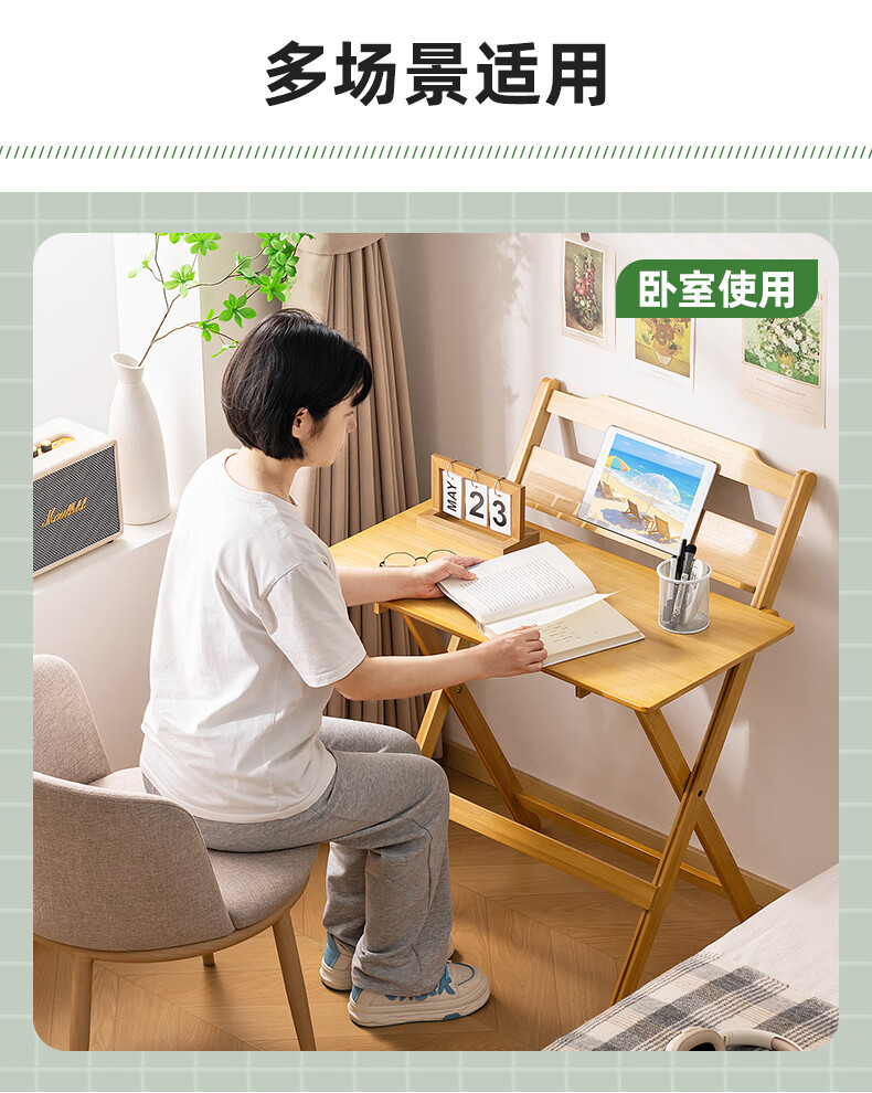 老竹匠可折叠书桌儿童书房电脑学习桌办公免安装家用卧室