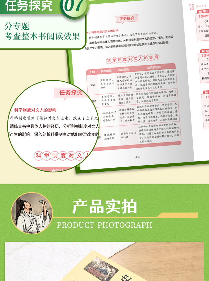 《儒林外史》是吴敬梓的代表作,是中国古代讽刺小说巅峰之作。书中以“功名富贵”为核心,全书共五十六回,采用群像式结构,描绘18世纪士人众生相,使人物贤愚智拙及品行优劣,纤发毕现,无所遁形,以有别于正史的日常琐记,谱写出入于官场和市井的儒林士人的心灵全景,深刻批判八股取士制度对士人的毒害,同时表达了对理想社会的向往,开创了小说直接评说现实的范例。