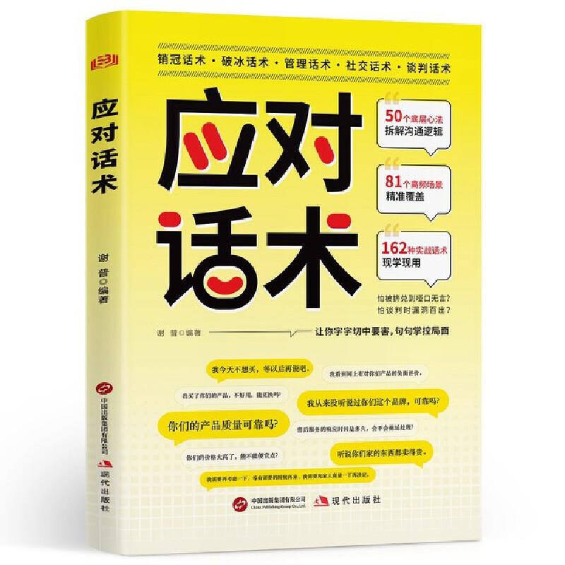 本书是一本助力提升沟通应对能力的实用指南。本书聚焦于生活与工作中的各种场景,从日常交流、商务谈判到矛盾冲突化解,全面解析 有效话术的构建逻辑。通过丰富案例,生动展现不同话术带来的天壤之别。无论是想巧妙拒绝他人、得体回应质疑,还是在社交中脱颖而 出,书中都提供了针对性策略与技巧。它将帮你打破沟通障碍,精准传达想法,赢得理解与支持,让你在任何对话情境中都能从容不迫, 轻松掌握沟通主动权。