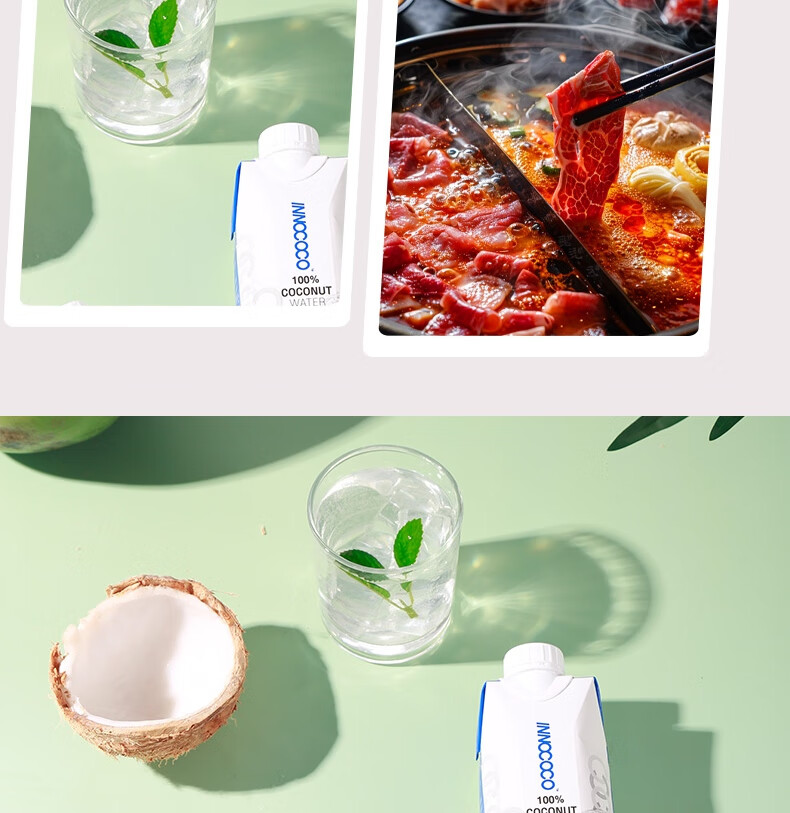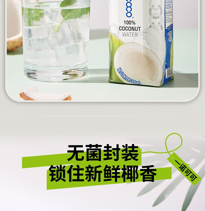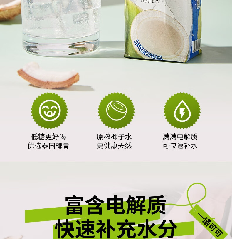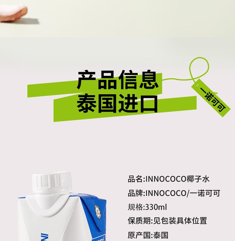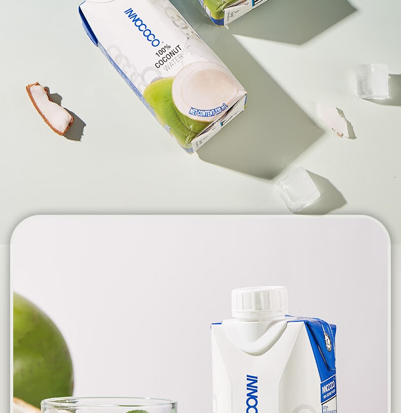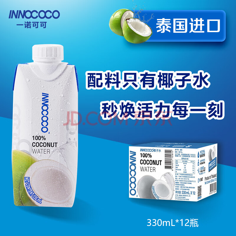 INNOCOCO泰国原装进口100%椰子水富含天然电解质NFC椰青果汁330ml*12瓶1箱