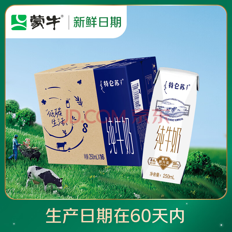 蒙牛【新鲜日期】特仑苏纯牛奶250ml*16盒 家庭早餐 送礼盒装