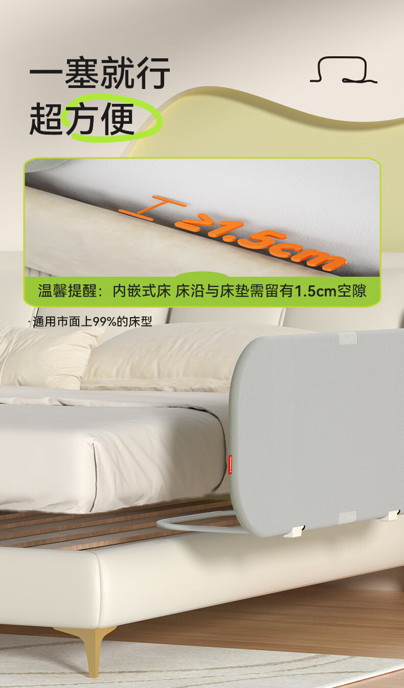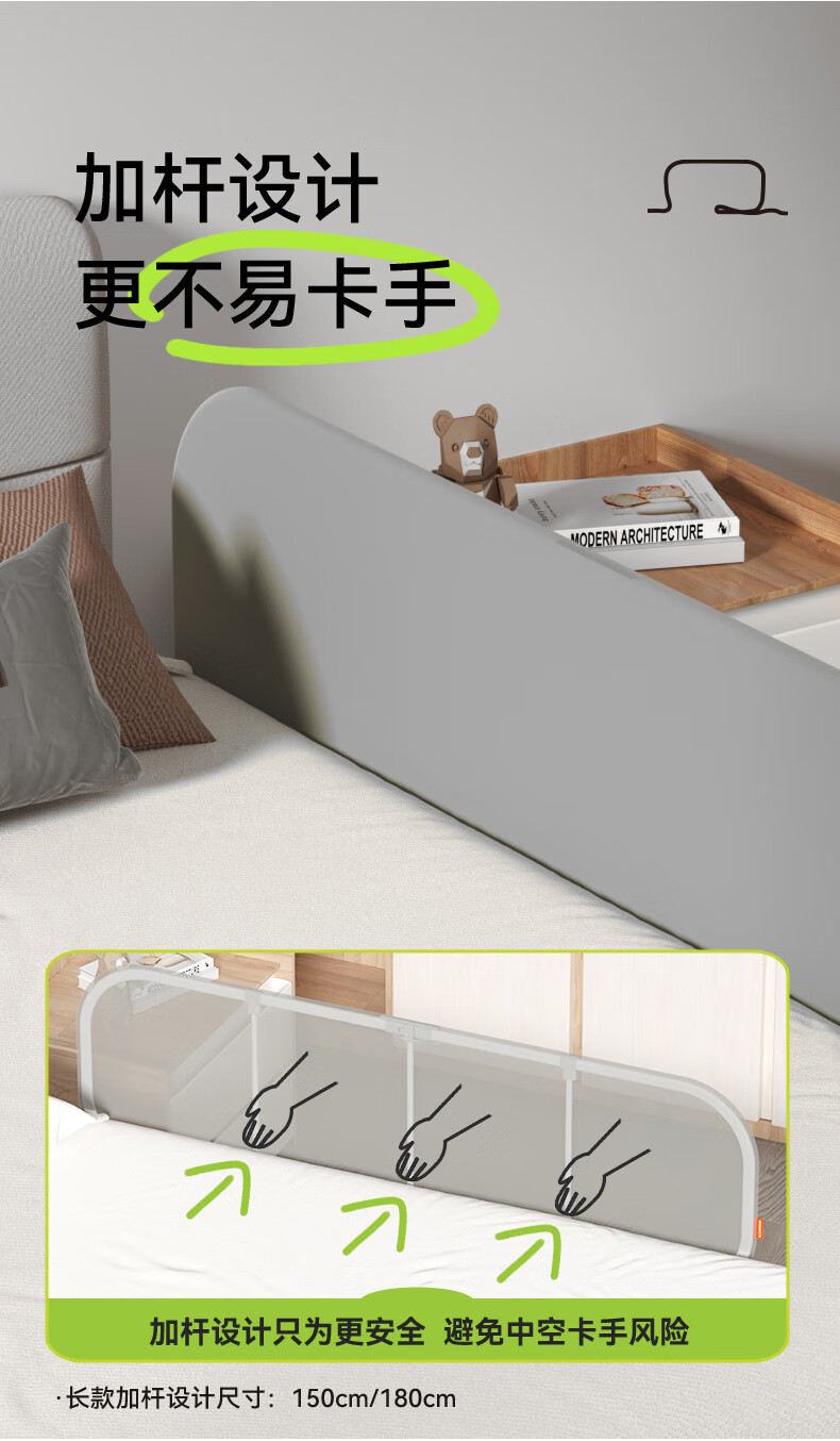 攸曼诚品便携式床护栏宝宝旅行床上防摔儿童床边挡板可折叠围栏单面0.9米