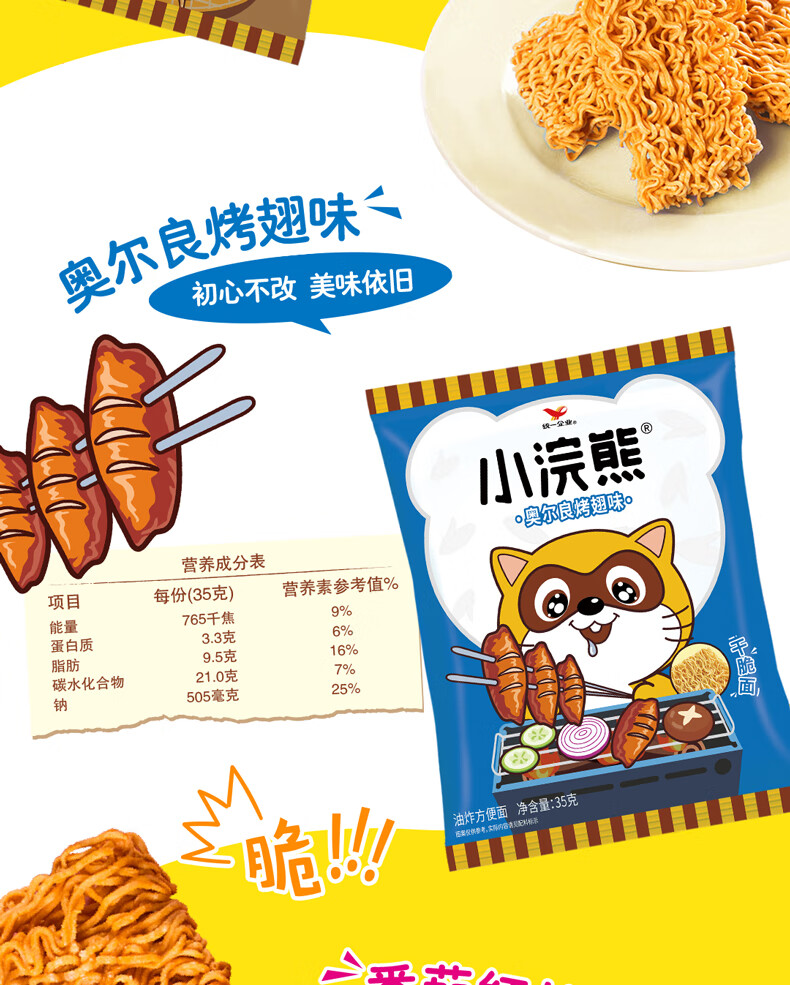 统一小浣熊 招牌香辣蟹味干脆面 35g*30包 整箱装儿时美食干脆面