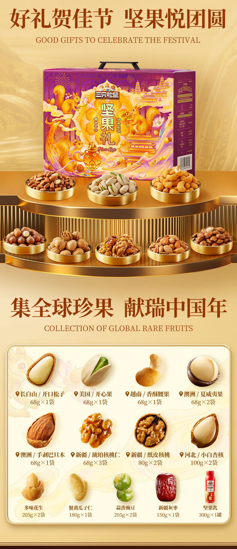 三只松鼠每日坚果纯坚果750g 坚果零食礼盒开心果新春年