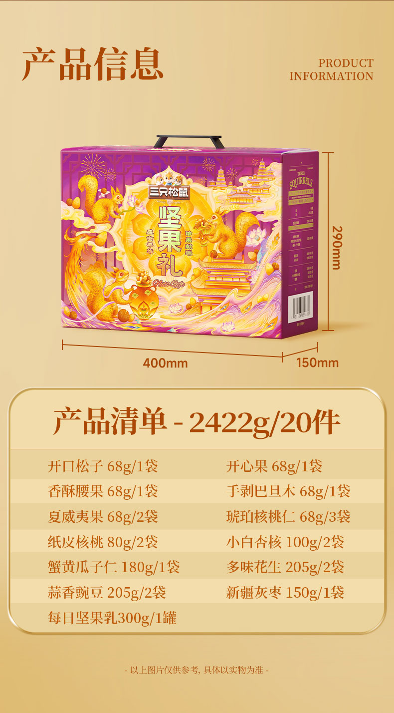三只松鼠坚果礼盒2422g/20件 新年货零食送礼松子开心果【李宏毅同款】