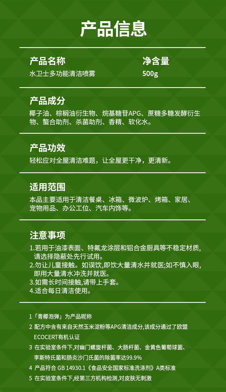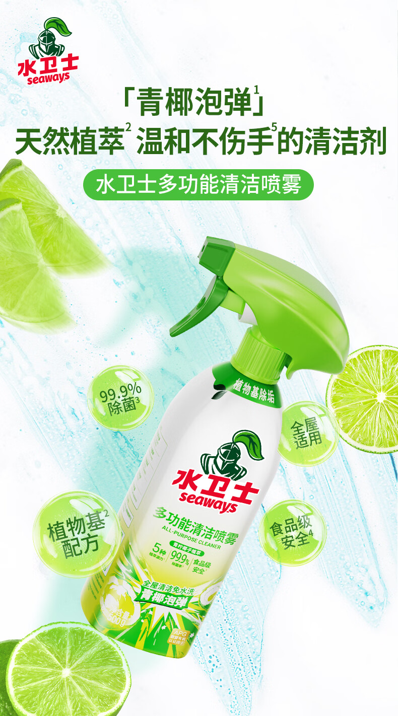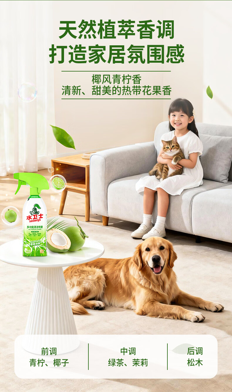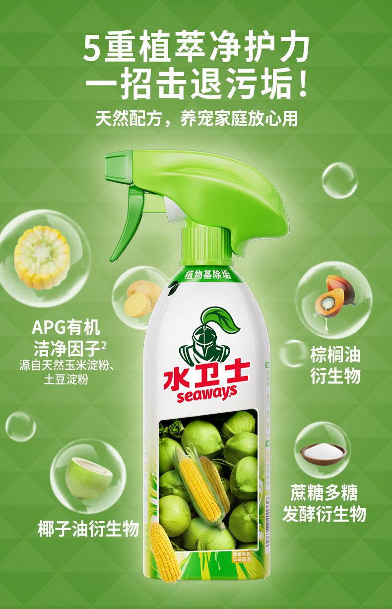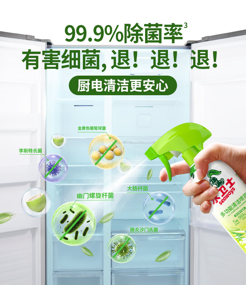 水卫士(水卫仕)冰箱清洁剂500g*3瓶除臭剂多功能清洁剂除味剂家电清洗