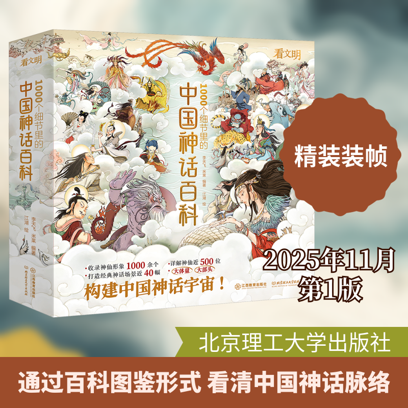 《看文明:100个细节里的中国神话百科》面向全年龄段读者,采用“百科+图鉴”的形式,汇编了来自史书典籍、文学作品及民间传说中的近50个中国神话人物、10O+法宝、40+神话传说中极具代表性的场景。全书共一册,集神话、历史、文化于一体,以时间和空间为第一、第二线索,用文字描绘神话世界的轮廓,用图画还原神话世界的色彩,着力打造神话中的经典场面与著名场景,将仙言、仙山、仙岛、仙境以最美轮美奂的形式呈现在读者眼前;带领读者遨游神话世界的同时,在文化的云端俯瞰神话的传承与变迁,在数千年的历史长河中追寻神话诞生和延续的意义。