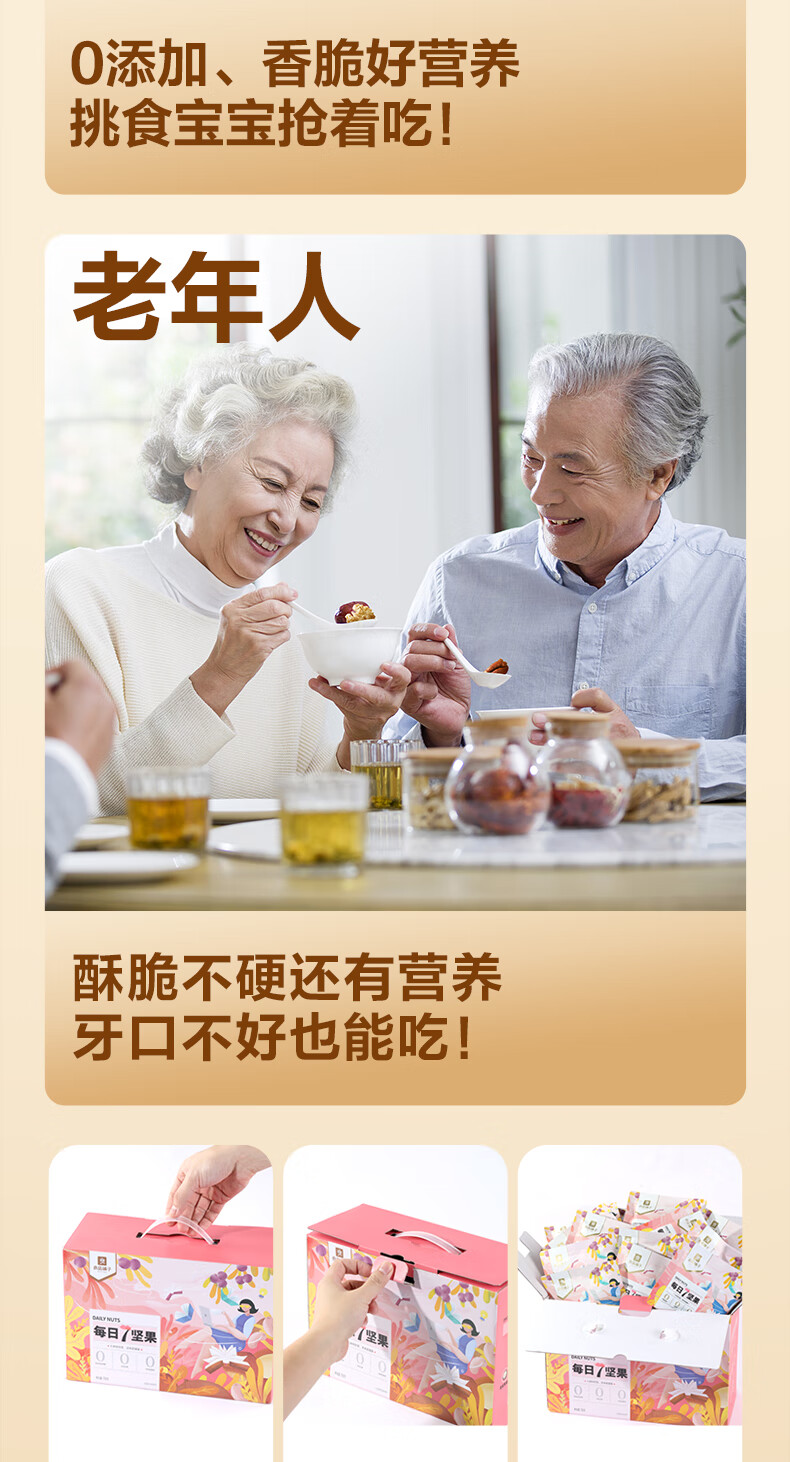 良品铺子 7款纯坚果750g 每日坚果干果礼盒核桃囤货零食30包长辈送礼团购