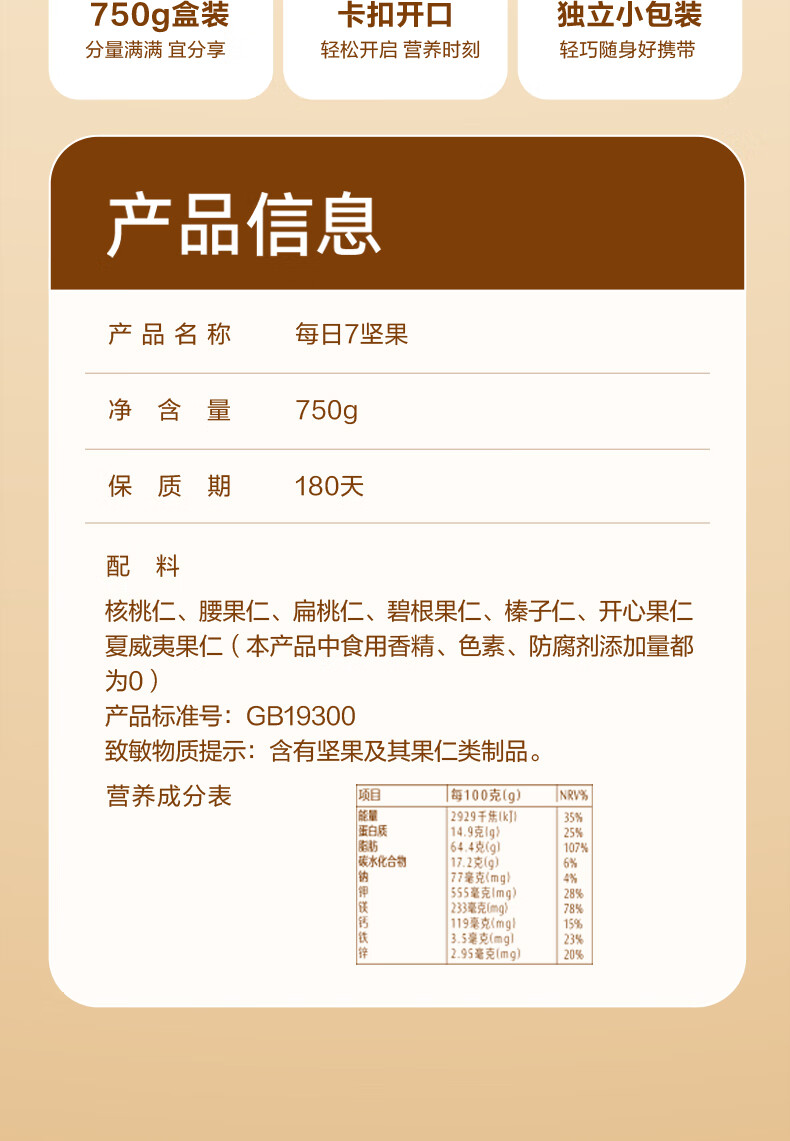 750g/盒【7种100%纯坚果】