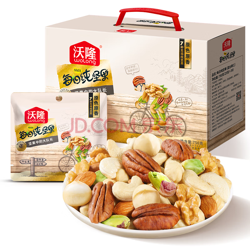 沃隆每日坚果纯坚果750g/30袋腰果开心果仁核桃0添加休闲零食坚果礼盒