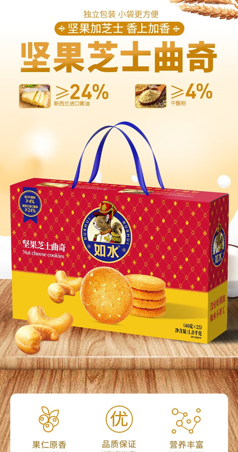 如水坚果芝士曲奇饼干1000g/盒 送礼礼物团购礼盒休闲零食独立包装