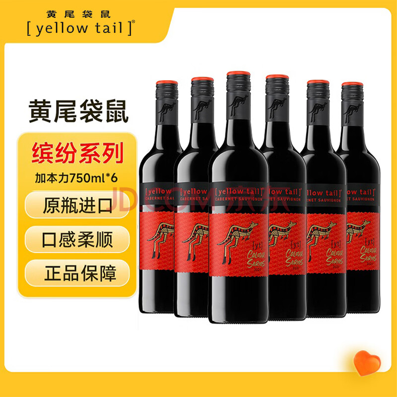 黄尾袋鼠(Yellow Tail)缤纷系列 加本力赤霞珠葡萄酒 750ml*6瓶 智利原瓶进口