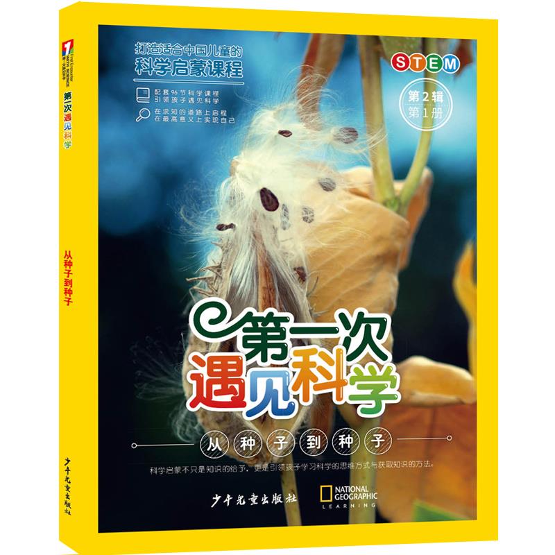 《第一次遇见科学(全12册)》是少年儿童出版社与美国国家地理学习公司基于版权合作联合打造的系统性科学启蒙图书。图书以大幅高清的图片,呈现美丽真实的生命与物质世界;以专业简洁的文字,阐释科学概念,引导科学认知。图书全12本,分为3辑,包括96个独立的科学主题,由儿童经验世界逐渐向外扩展,帮助孩子搭建起认识世界的桥梁。每个主题提供导读与评估,概括学习目标,提示探究方法,强化阅读效果。图书在给予科学知识的同时,引导孩子了解获取知识的方法,掌握科学的思维方式,拥有观察、辨别、推理、判断等能力。《第一次遇见科学》第2辑第1册《从种子到种子》,包括《咬啊咬》《扬帆远航》《观鸟》《海滩上》《从种子到种子》《气象观察员》《瞧一瞧潮池》《仔细观察》8个主题。