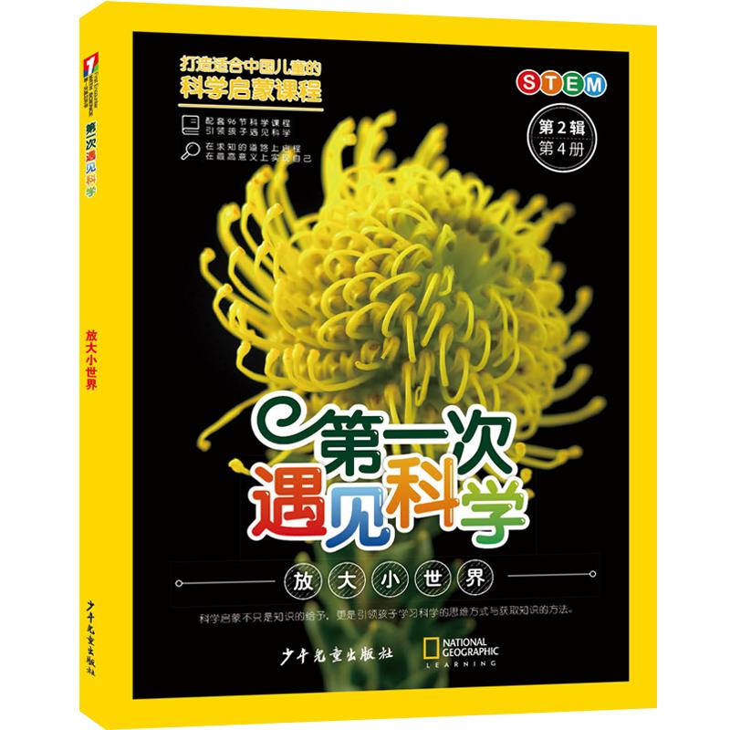《第一次遇见科学(全12册)》是少年儿童出版社与美国国家地理学习公司基于版权合作联合打造的系统性科学启蒙图书。图书以大幅高清的图片,呈现美丽真实的生命与物质世界;以专业简洁的文字,阐释科学概念,引导科学认知。图书全12本,分为3辑,包括96个独立的科学主题,由儿童经验世界逐渐向外扩展,帮助孩子搭建起认识世界的桥梁。每个主题提供导读与评估,概括学习目标,提示探究方法,强化阅读效果。图书在给予科学知识的同时,引导孩子了解获取知识的方法,掌握科学的思维方式,拥有观察、辨别、推理、判断等能力。《第一次遇见科学》第2辑第4册《放大小世界》,包括《放大小世界》《背上的宝宝》《沙漠里有些什么》《海鹦之家》《滴滴珍贵》《观月》《狮群的生活》《清理干净》8个主题。
