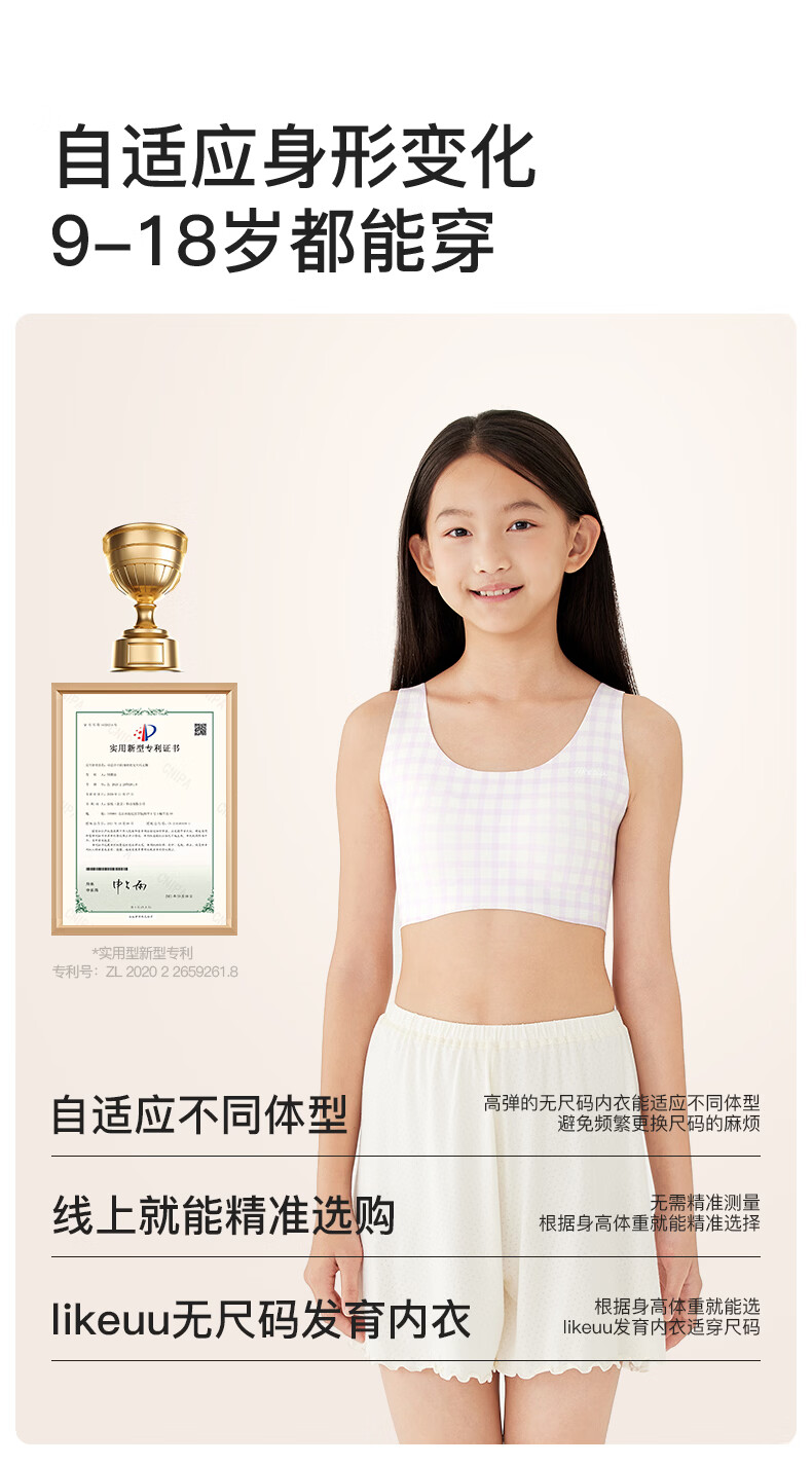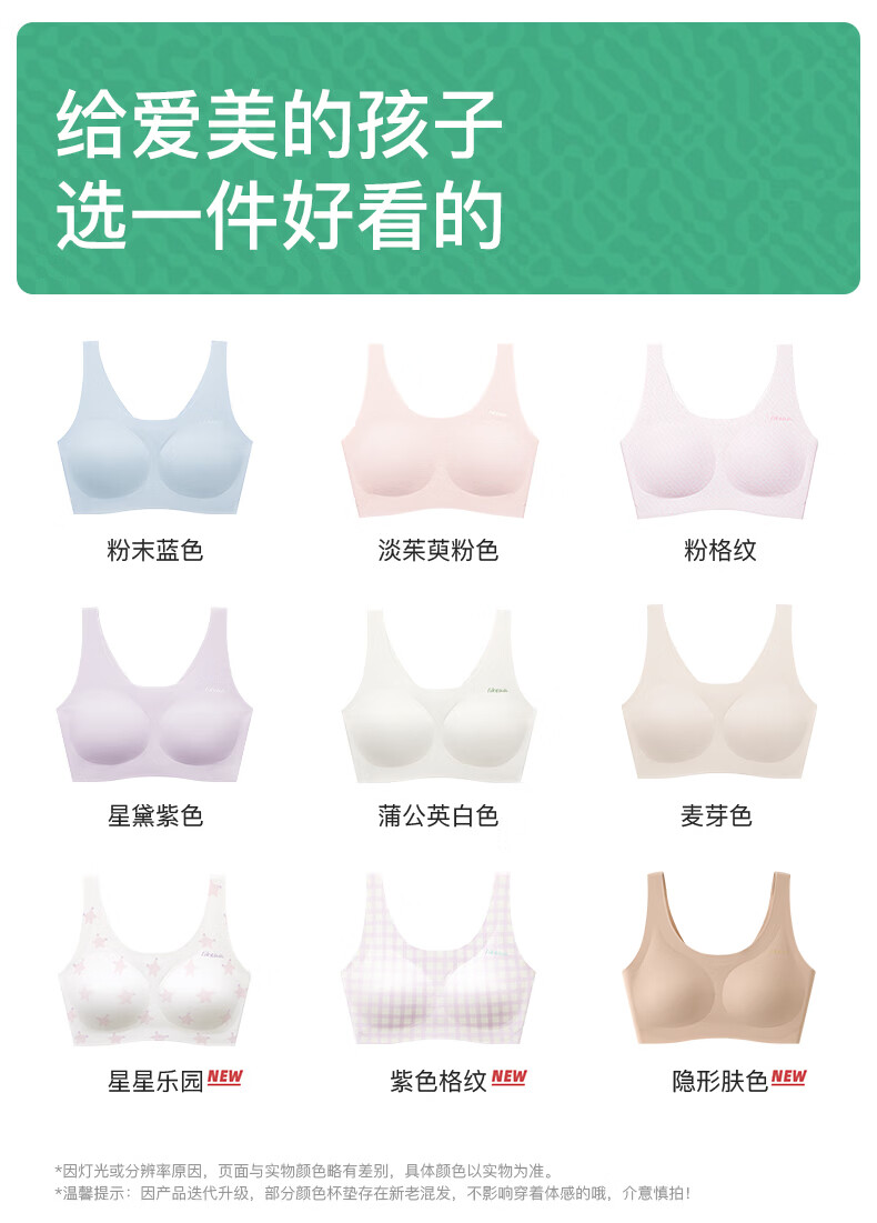 ubras开学季少女文胸无尺码内衣女生发育期蓝PLUS+