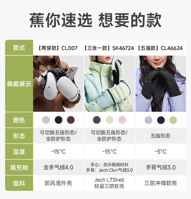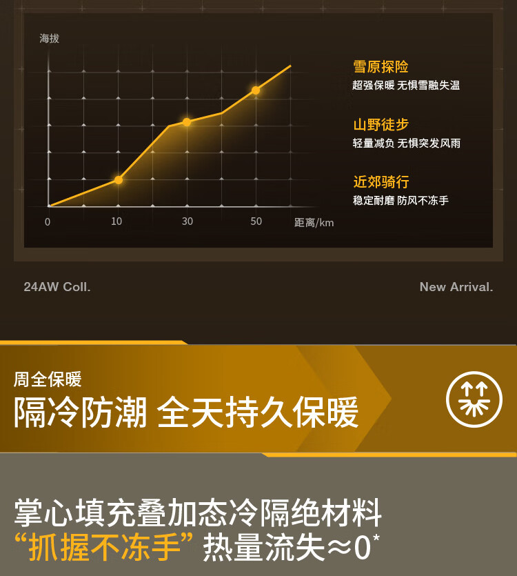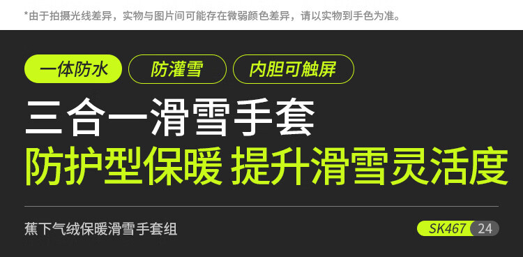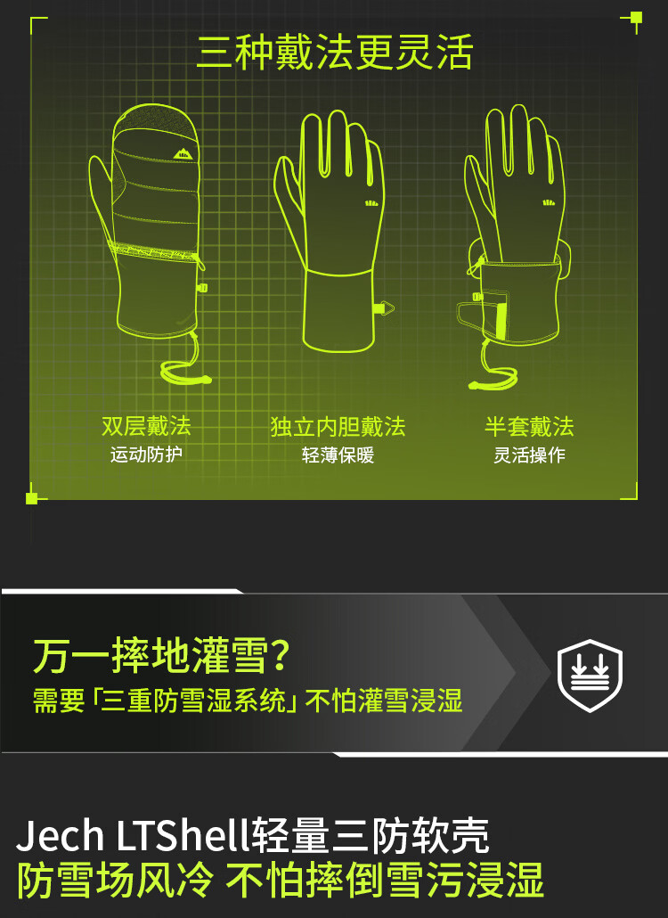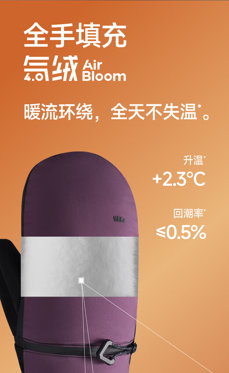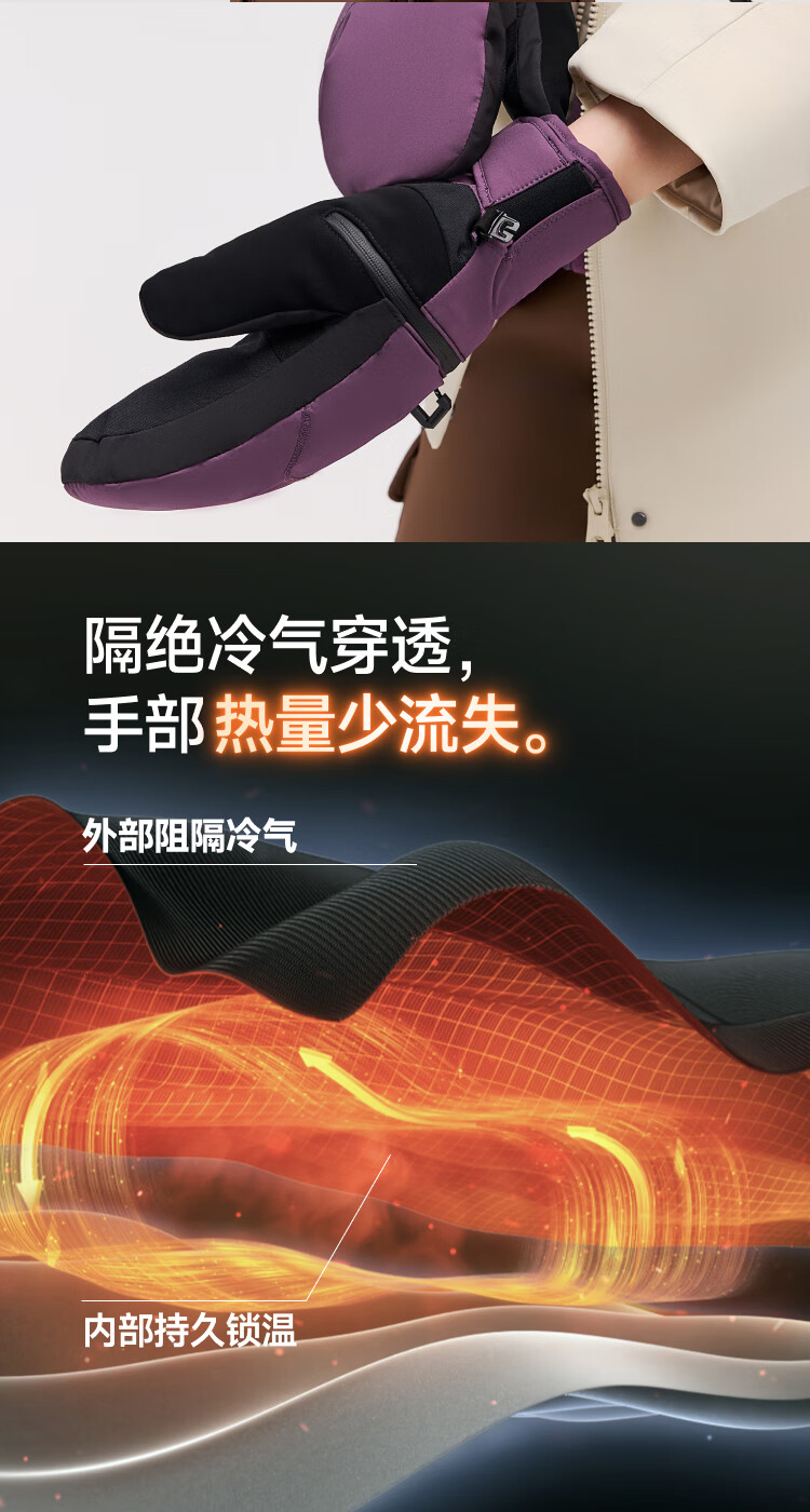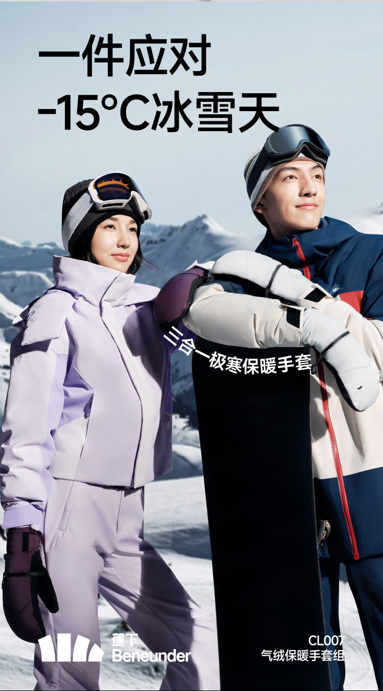 蕉下(beneunder)手套冬季男滑雪手套女气绒保暖手套防风雪登雪山玩雪手套防水抗寒