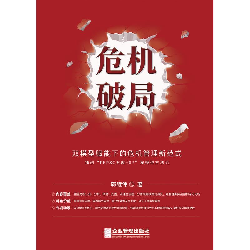 本书由品牌声誉与危机管理专家郭继伟基于20余年实战经验所著的创新之作。本书首次系统提出了 "PEPSC五度原则"+"6P原则"双模型理论框架,致力于为政府、企业及公众人物提供全新、科学、可操作的危机管理方法论。"PEPSC五度原则"从角度、温度、态度、力度、尺度五个维度精准指导危机沟通与发声策略,确保回应精准、有温度、有立场、有分寸。 "6P原则"则从心理、情绪、信息、手段、声明、风险等六大层面构建系统性危机准备机制,从而实现从预警到恢复的全周期管理。双模型相辅相成,既注重战略层面的体系建设,也聚焦战术层面的沟通艺术。本书结合案例剖析舆情逻辑,强调实战模拟,揭示双模型理论框架在网络谣言、网络暴力、黑公关、公众人物声誉风险等典型场景中的实际应用,助力科学化管控危机,化险为机。无论是企业管理者、公关从业者还是普通读者,都能从中获得危机管理智慧。
