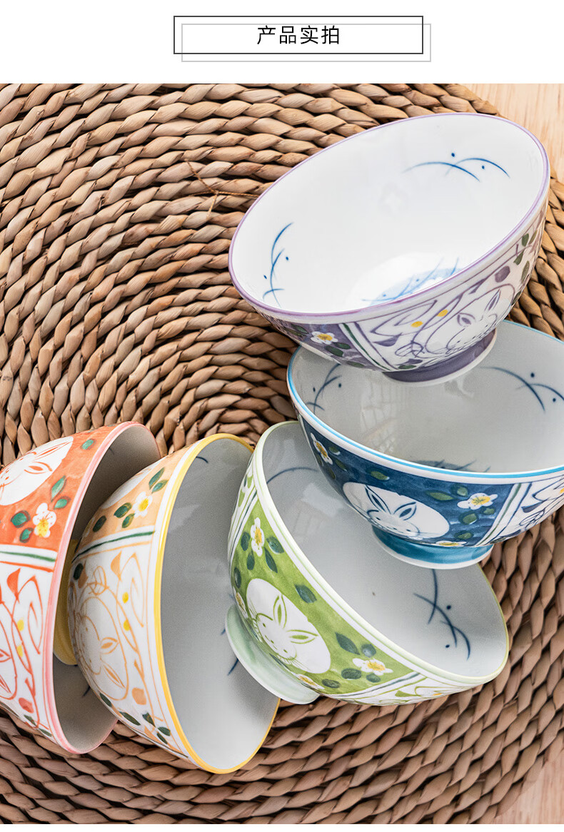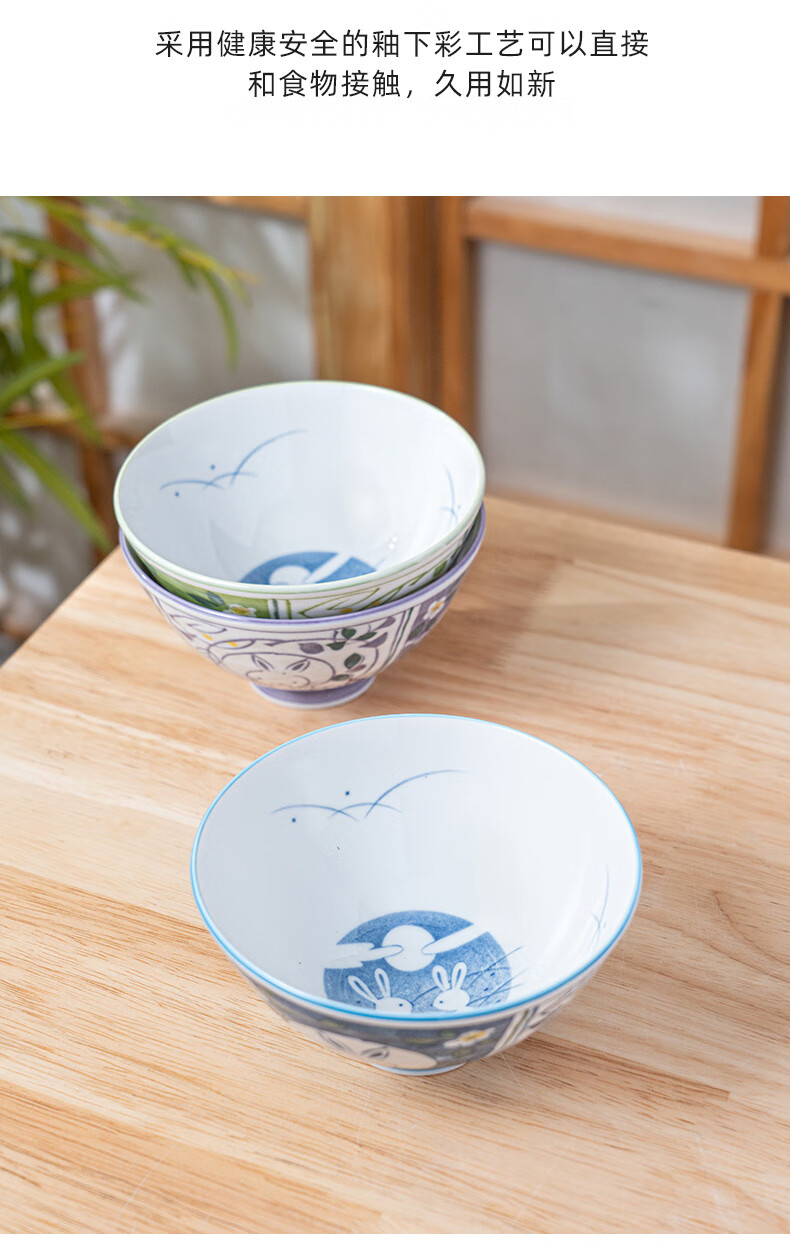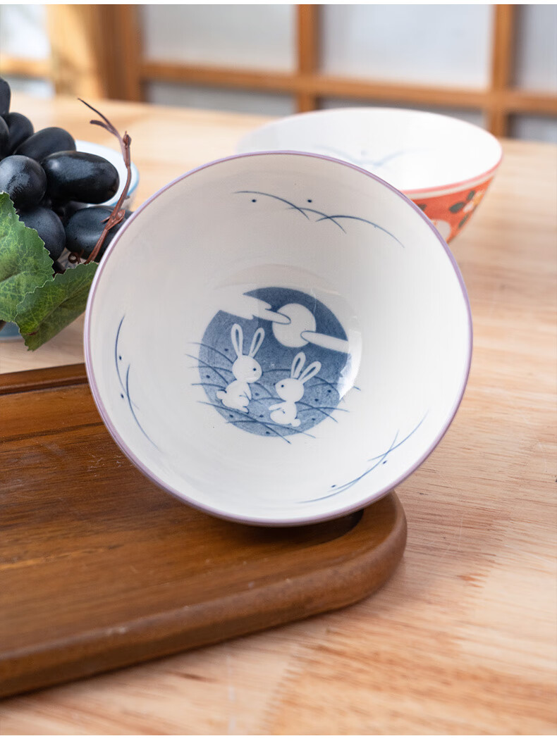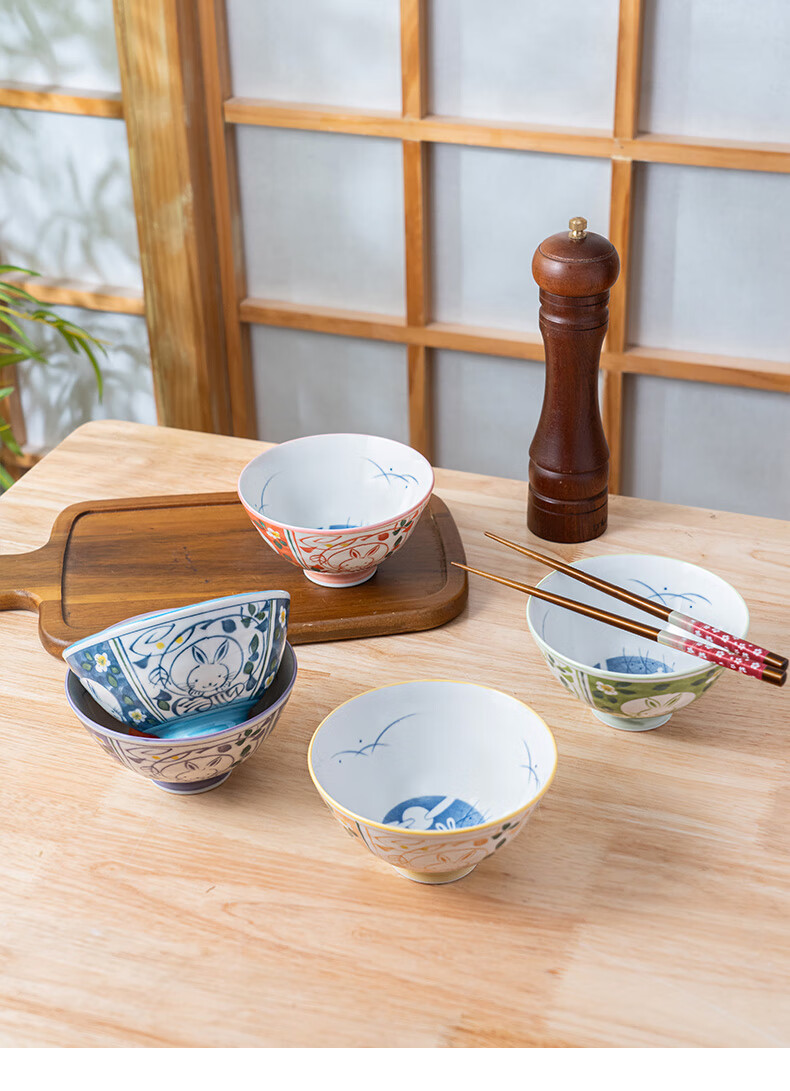 美浓烧日本进口陶瓷家用饭碗浓花兔5英寸釉下彩 5件套礼盒装