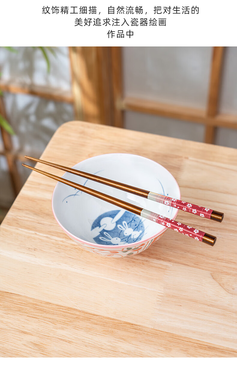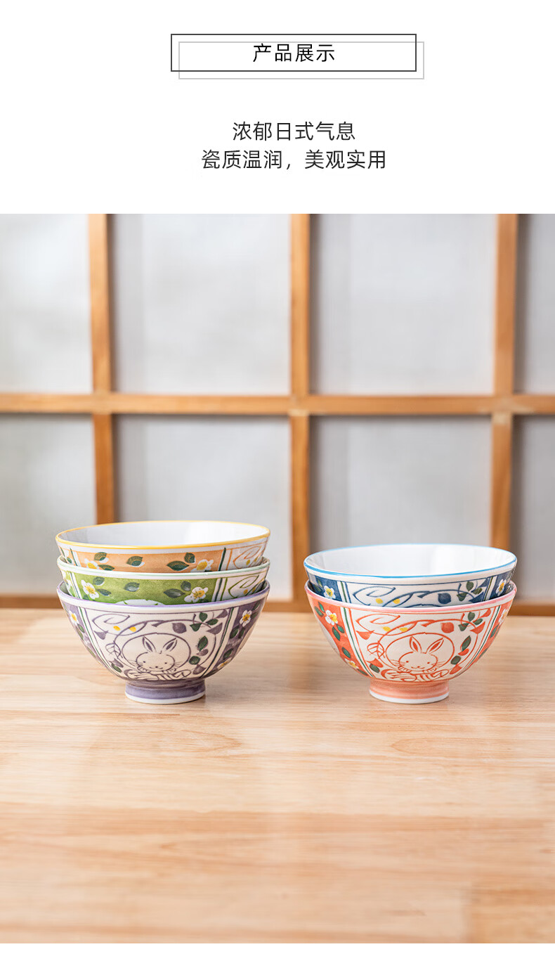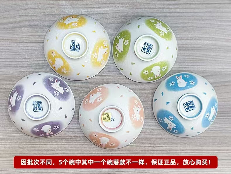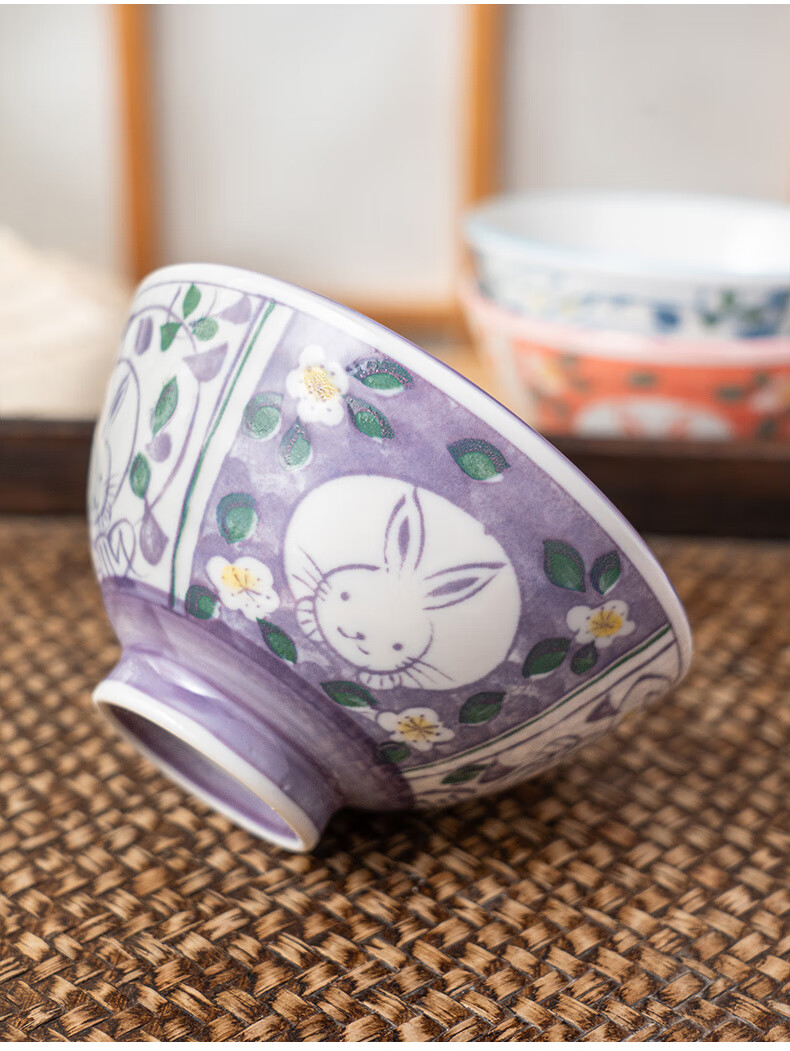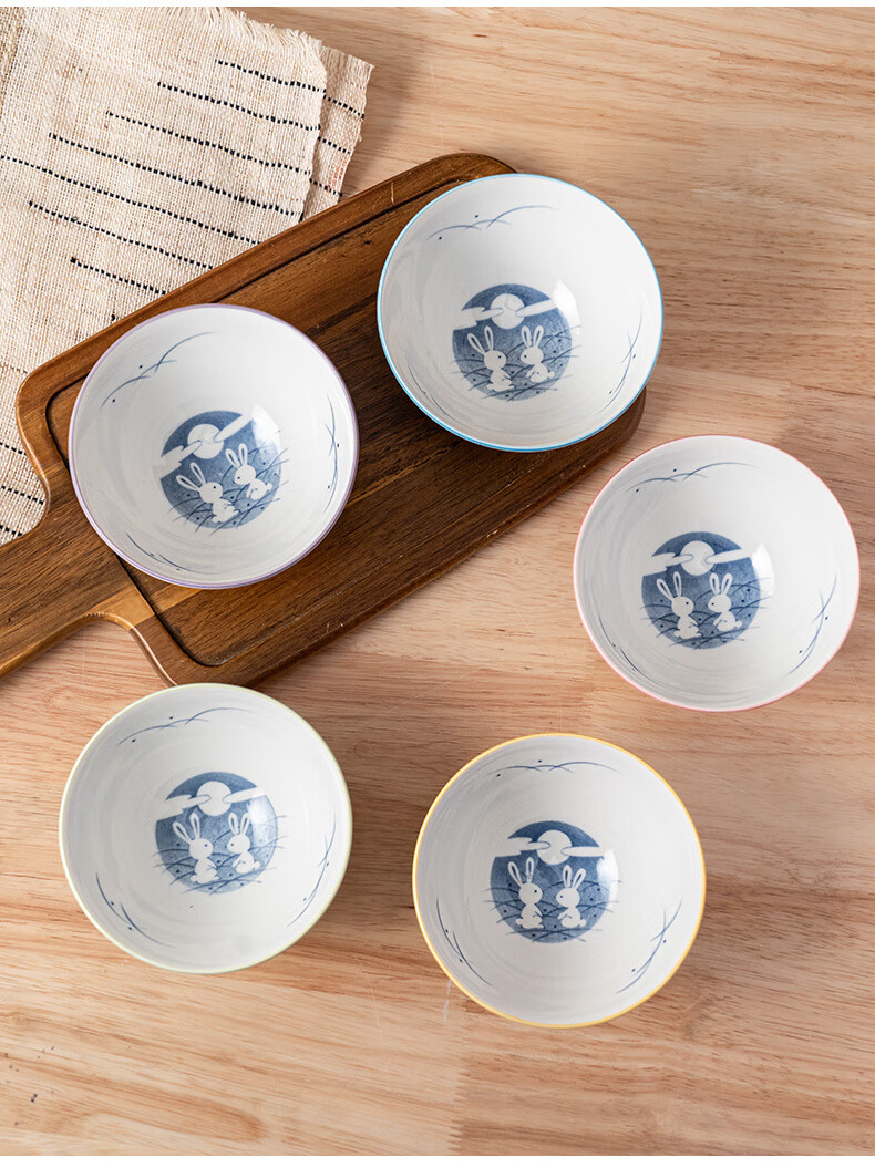 美浓烧日本进口陶瓷家用饭碗浓花兔5英寸釉下彩 5件套礼盒装
