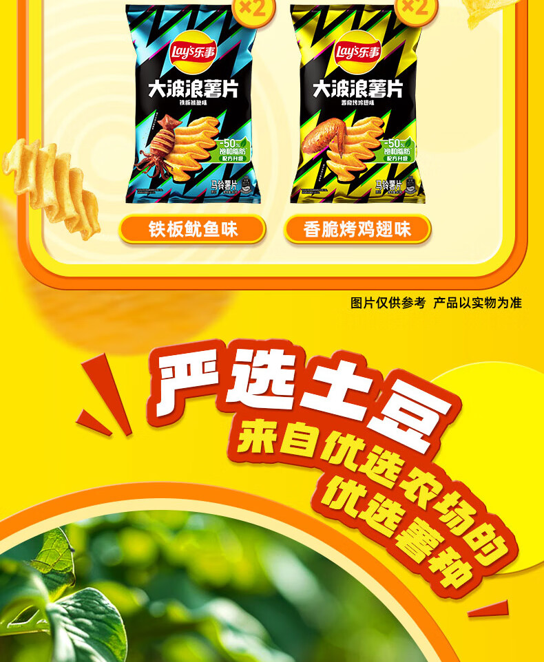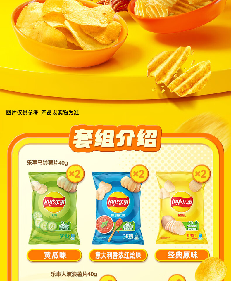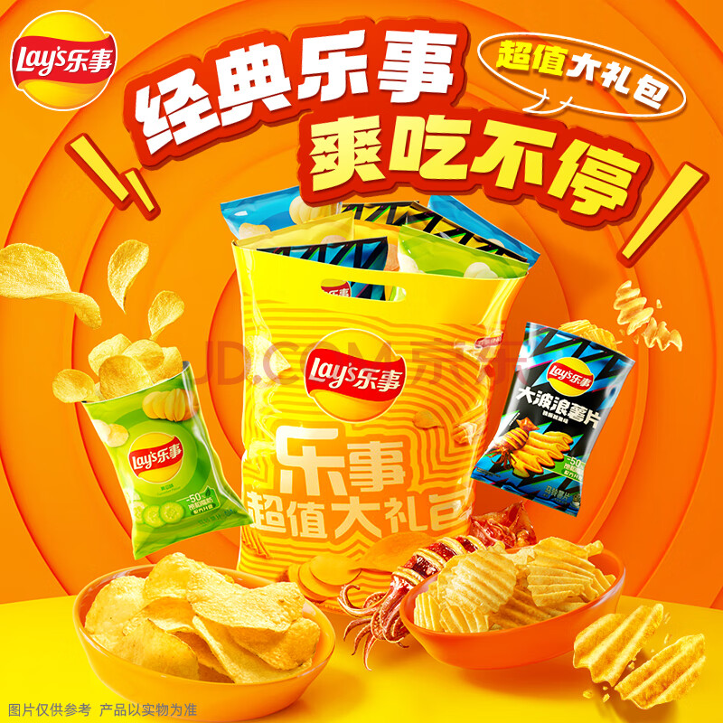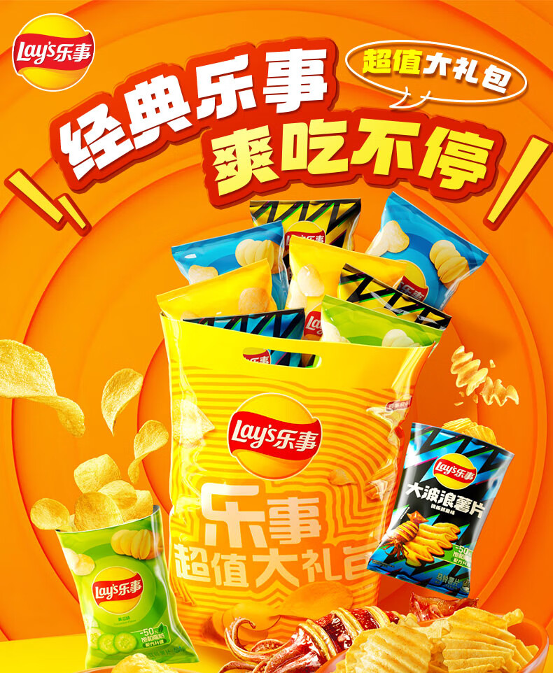 乐事(Lay's)薯片(黄瓜味+原味+红烩味+鱿鱼味+鸡翅味)400g 混合10包