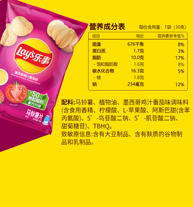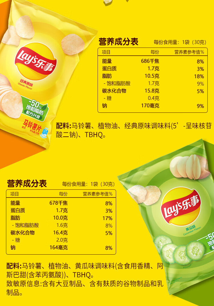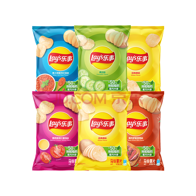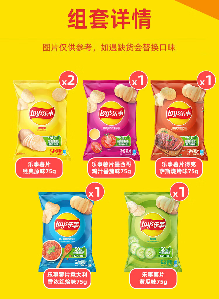 乐事(Lay's)薯片混合口味75g*6包450g 休闲零食 百事食