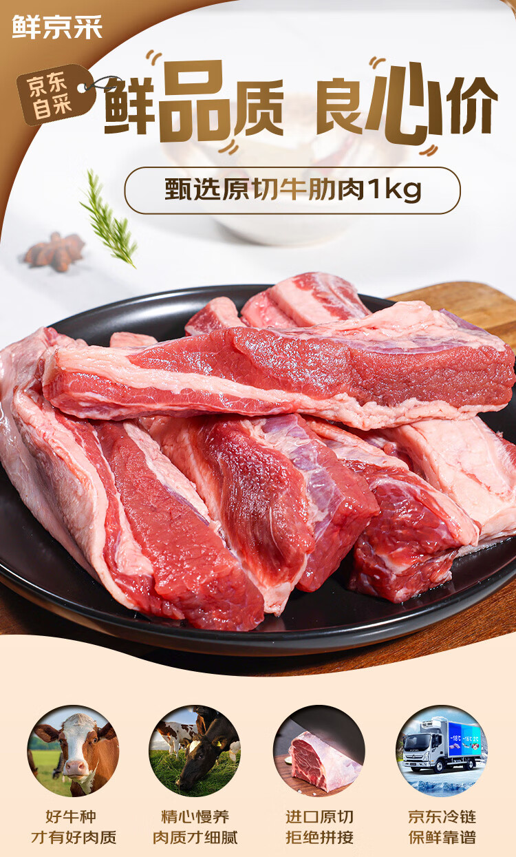 鲜京采 巴西进口原切牛肋肉2斤 牛胸腹部位肋条肉 红烧炖煮 【真原切】