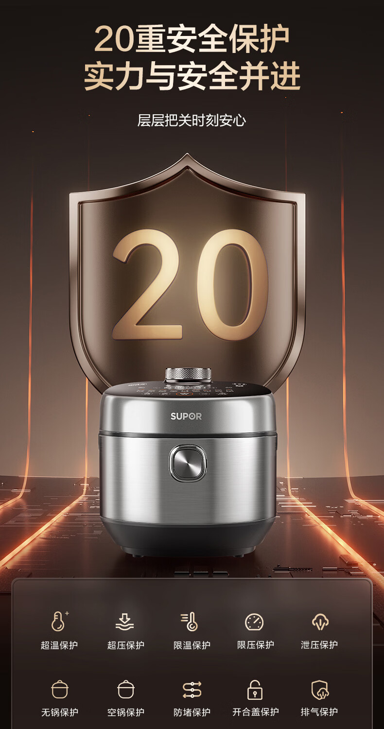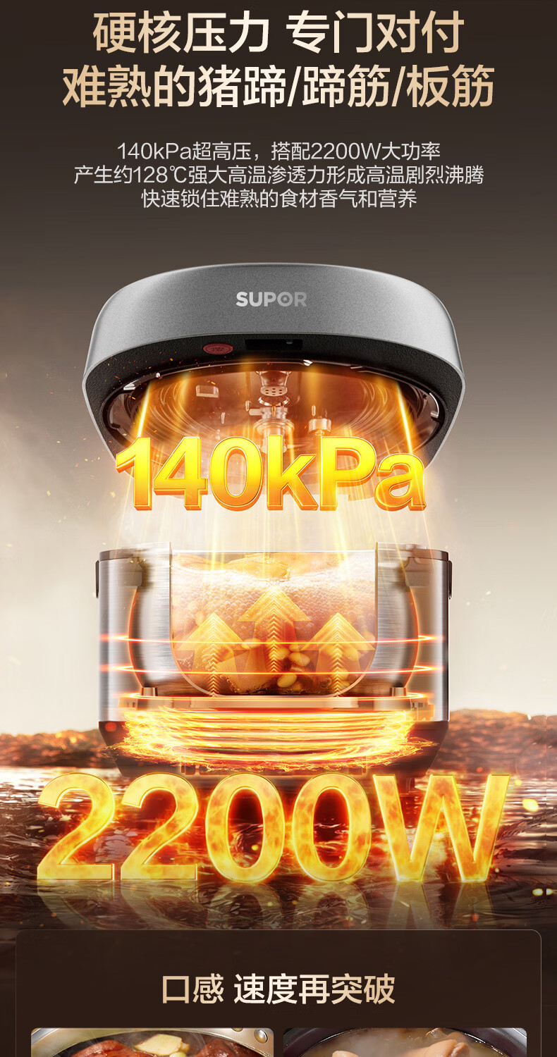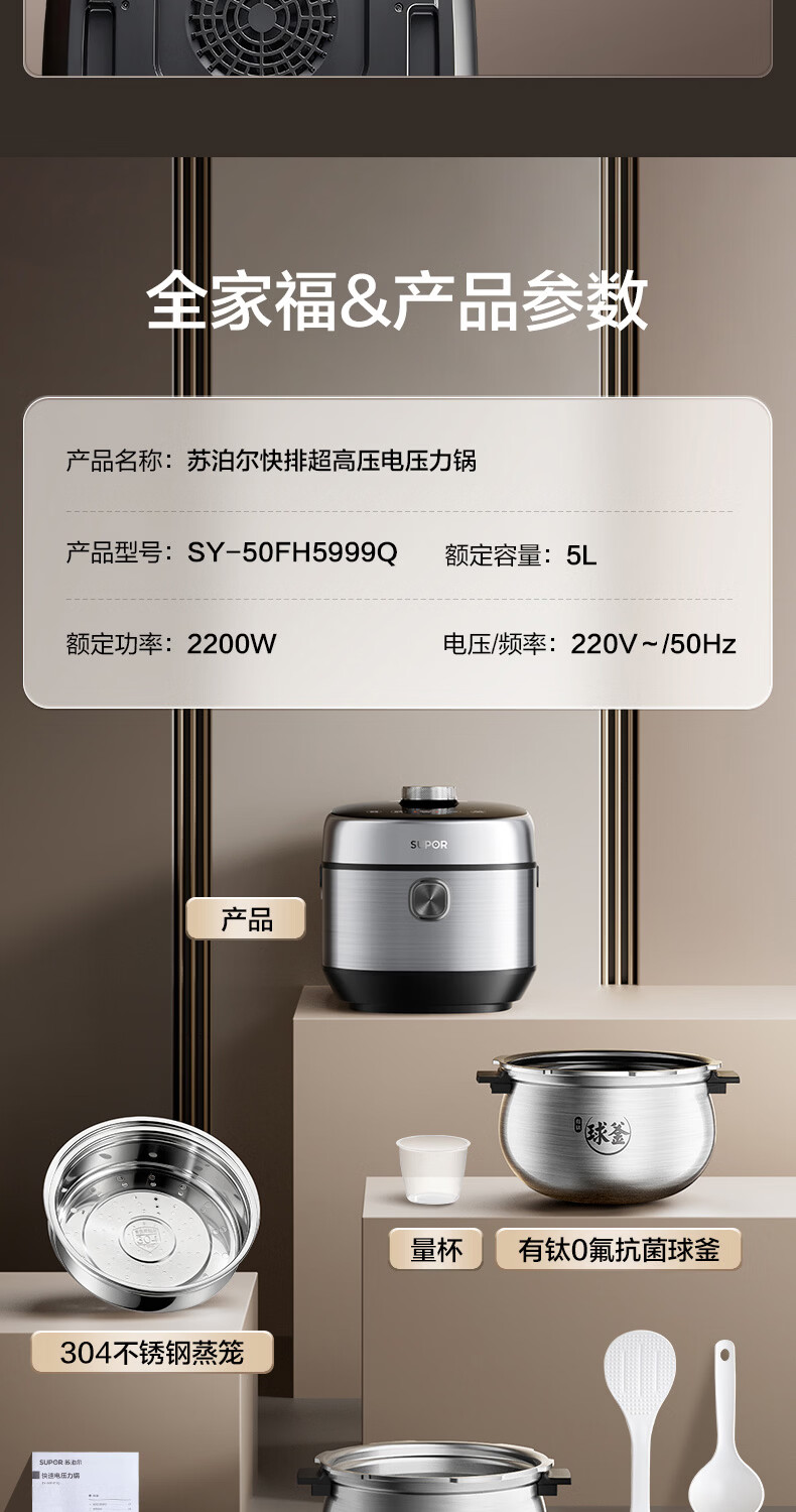 苏泊尔(SUPOR)新品高压140kPa快排有钛鲜呼吸IH电压力锅5L 2200W 316L高压锅4-6人家用SY-50FH5999Q