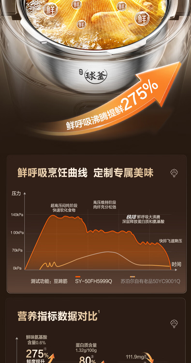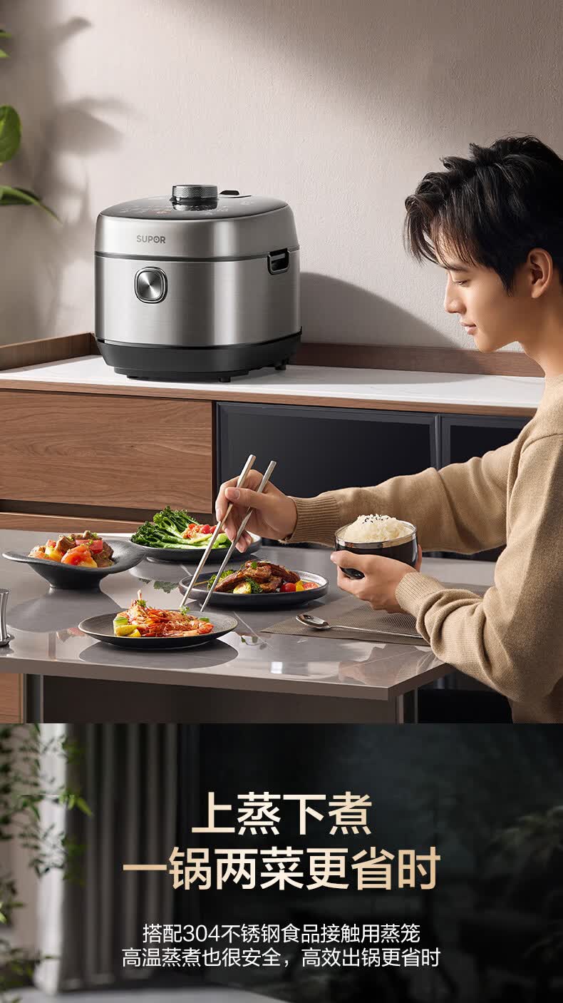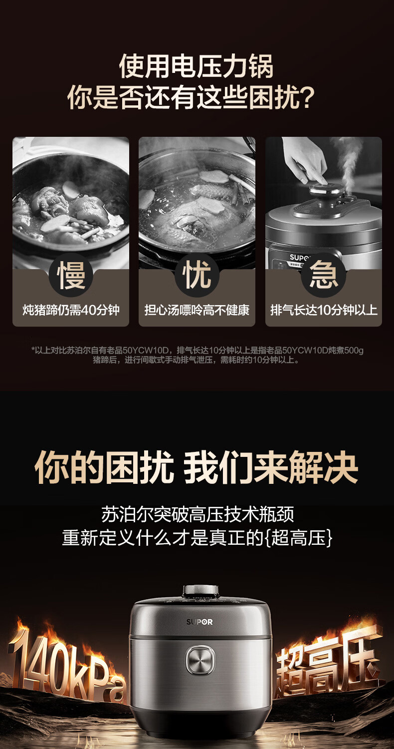 苏泊尔(SUPOR)新品高压140kPa快排有钛鲜呼吸IH电压力锅5L 2200W 316L高压锅4-6人家用SY-50FH5999Q