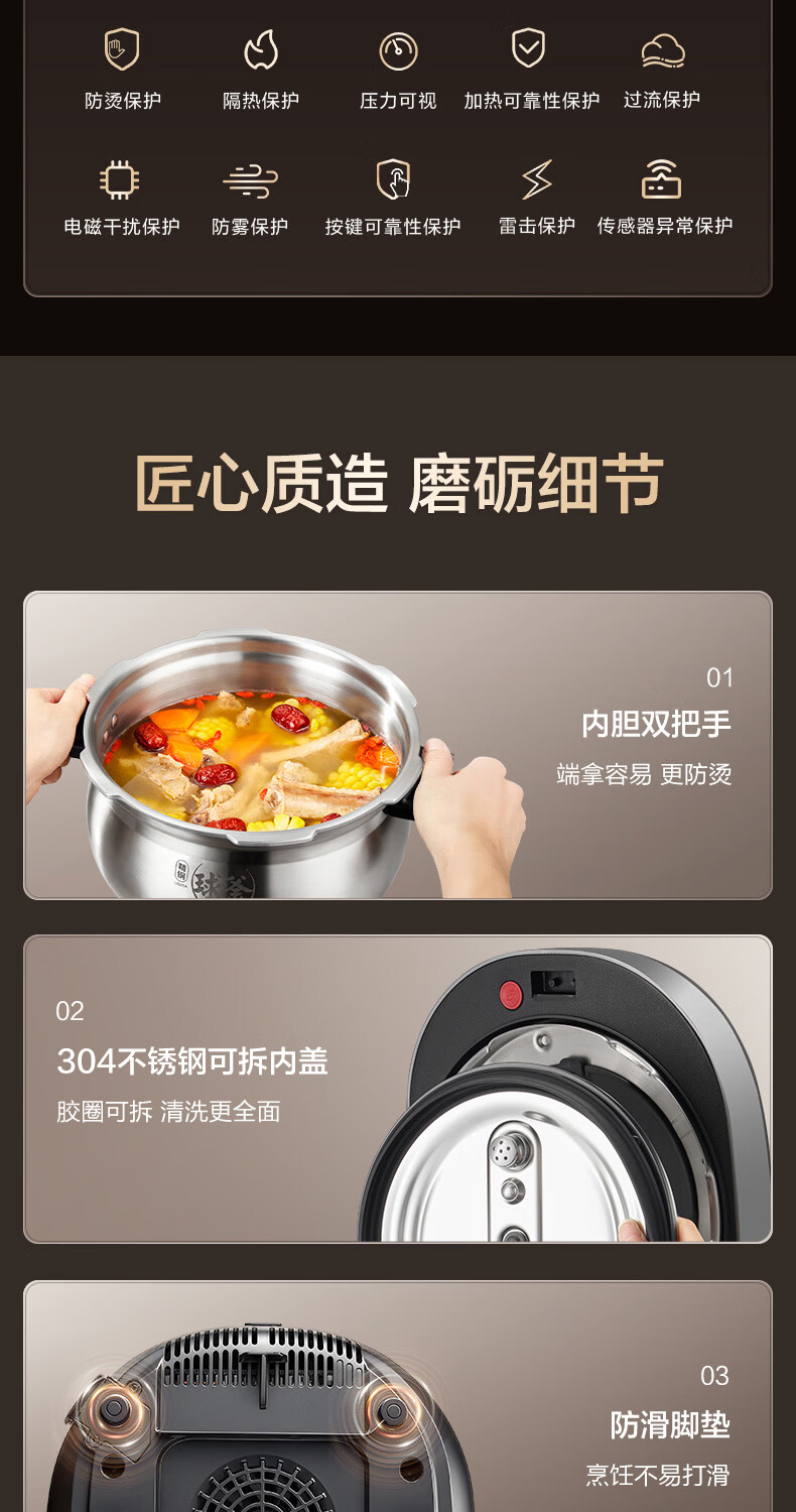 九阳(Joyoung)6L大容量电压力锅家用双胆全自动智能预