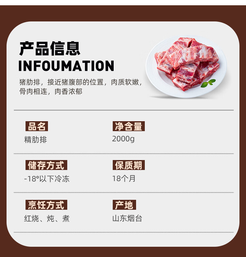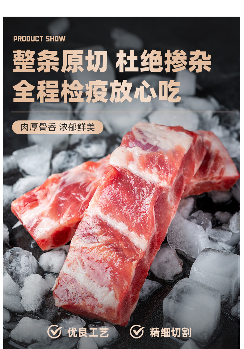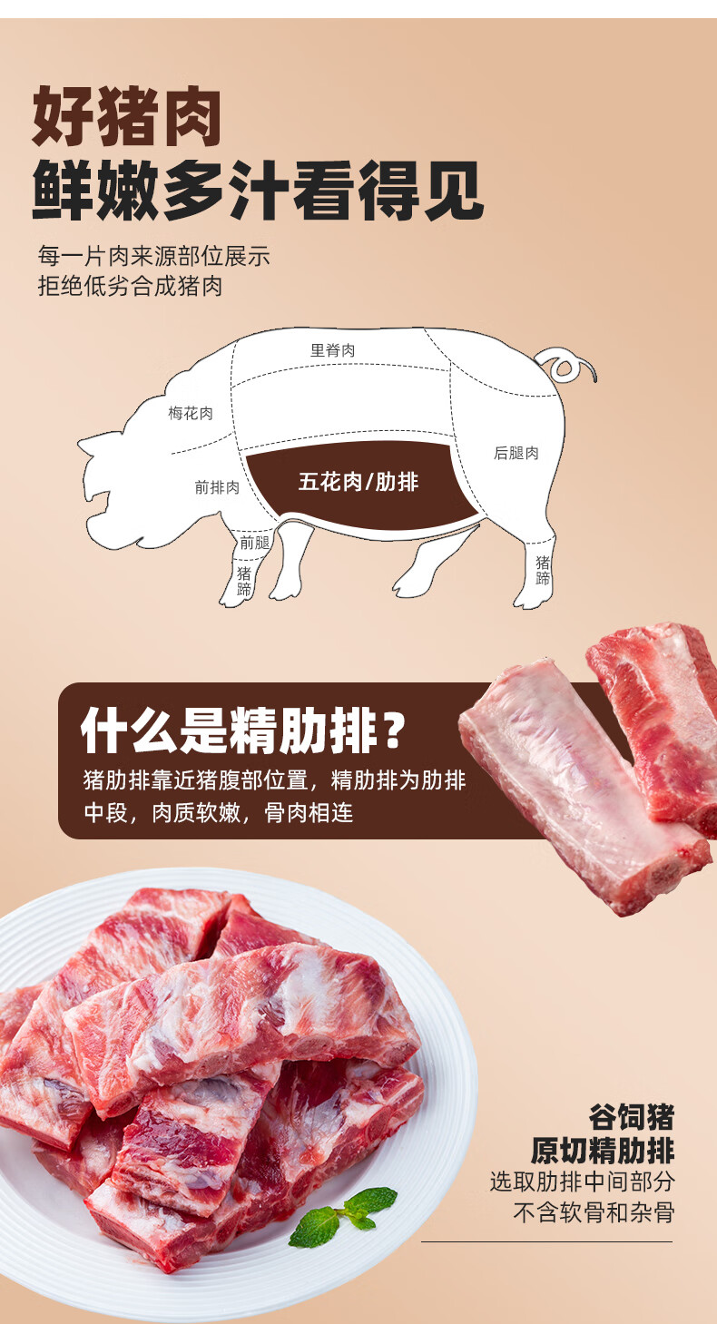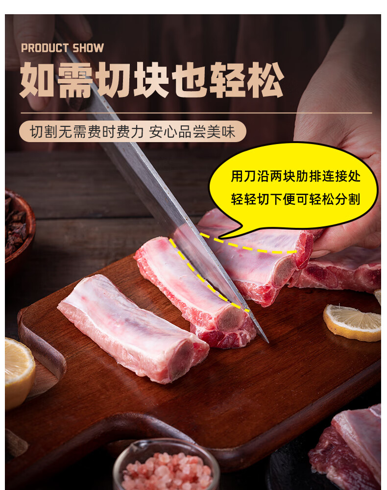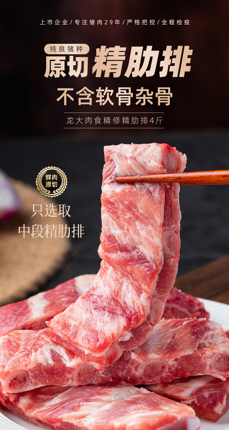 龙大肉食 猪精肋排条 净重4斤 原切整切猪肋条连排精肋排排骨猪肉生鲜
