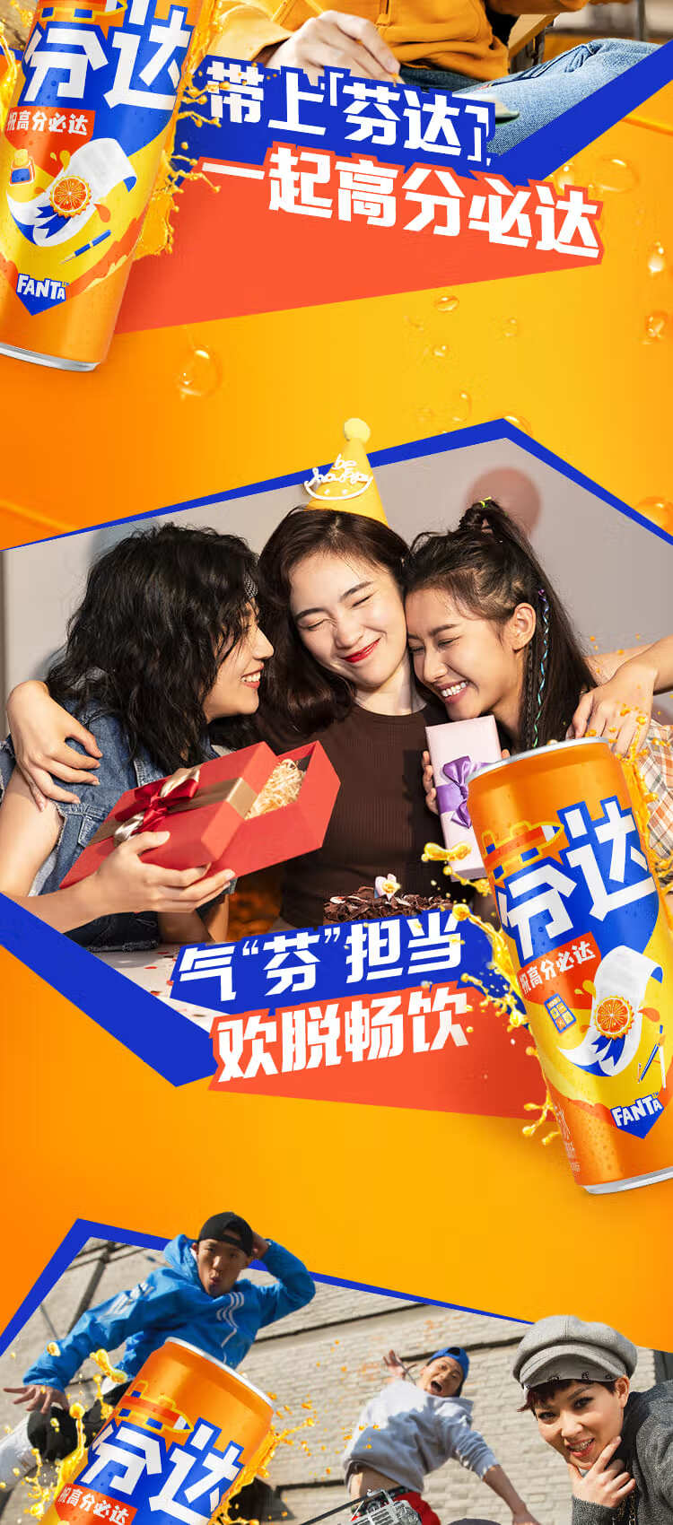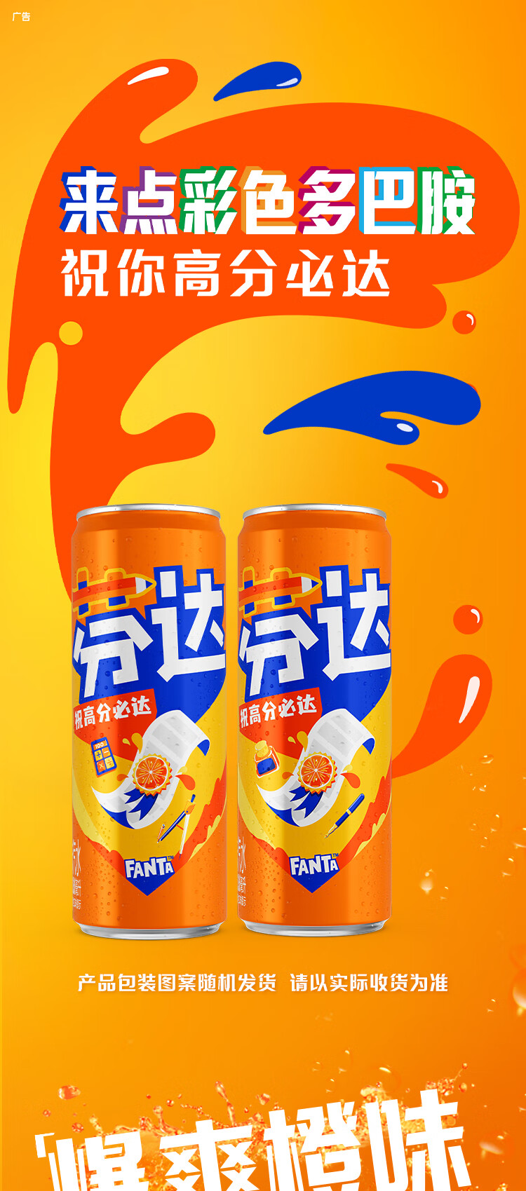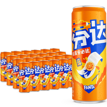 可口可乐(Coca-Cola)芬达Fanta 橙味汽水摩登罐碳酸饮料330ml*24罐 包装随机发