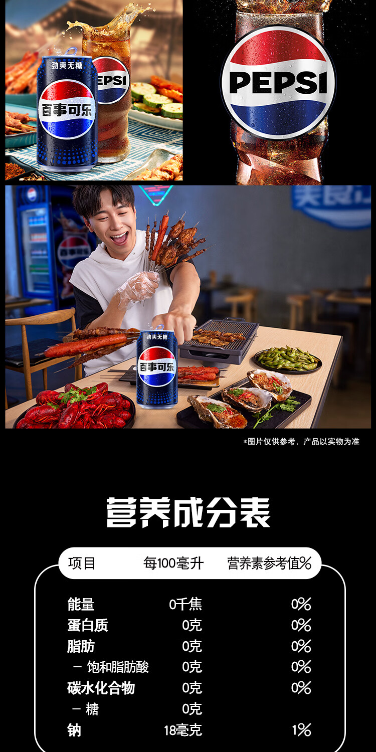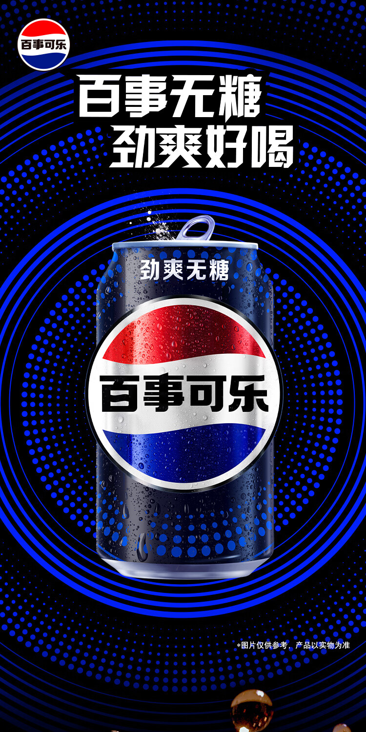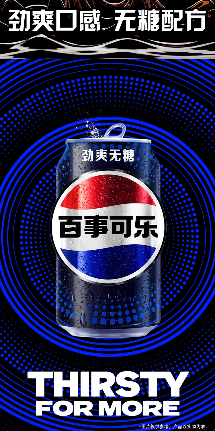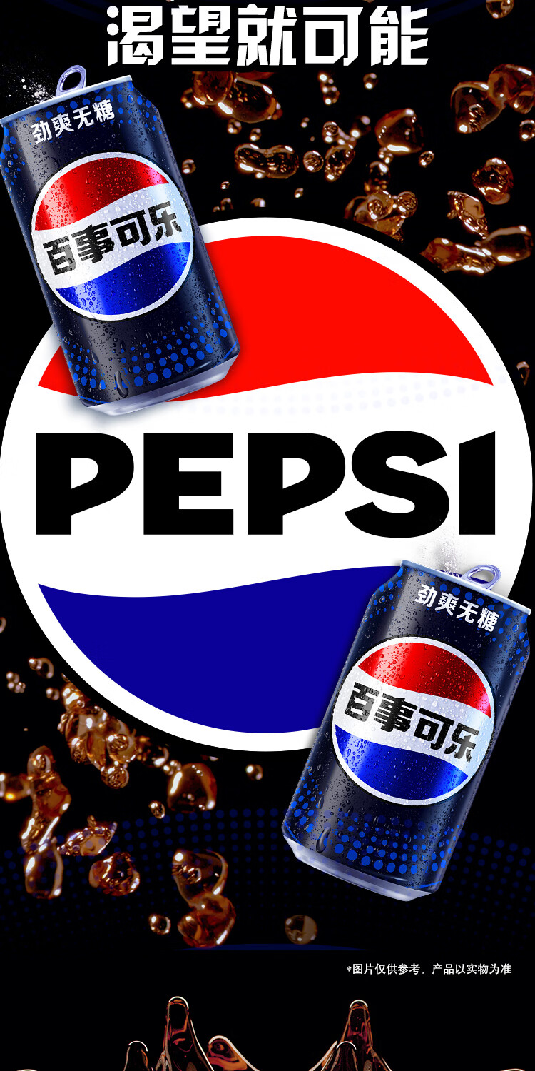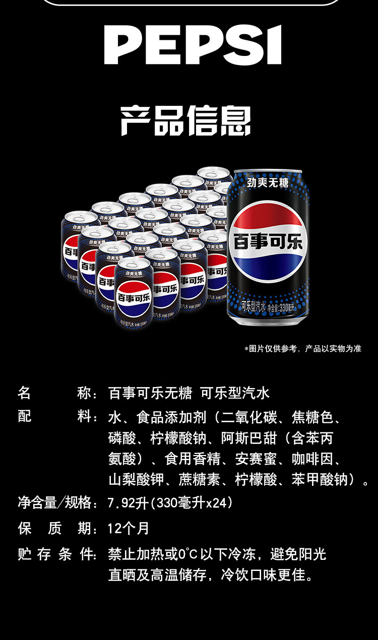 百事可乐Pepsi 无糖可乐碳酸饮料汽水 330ml*24听 黑罐整箱装(包装随机)