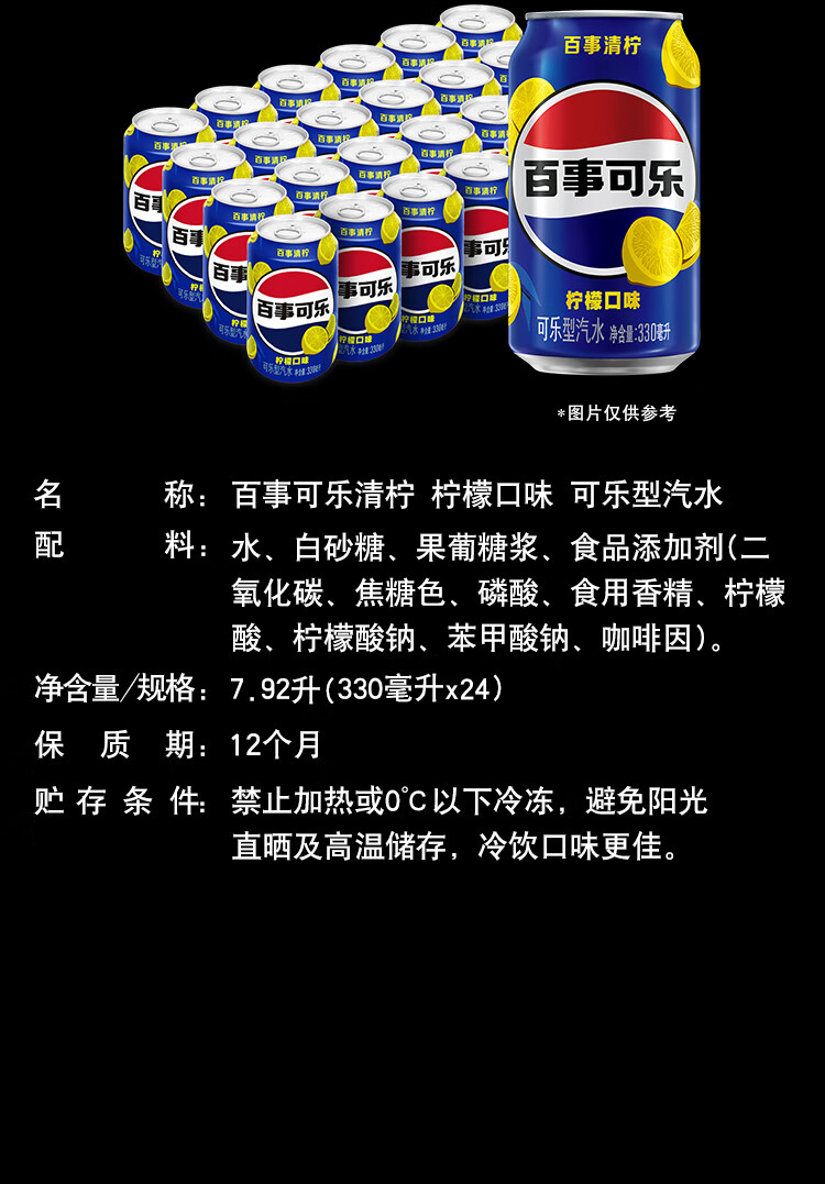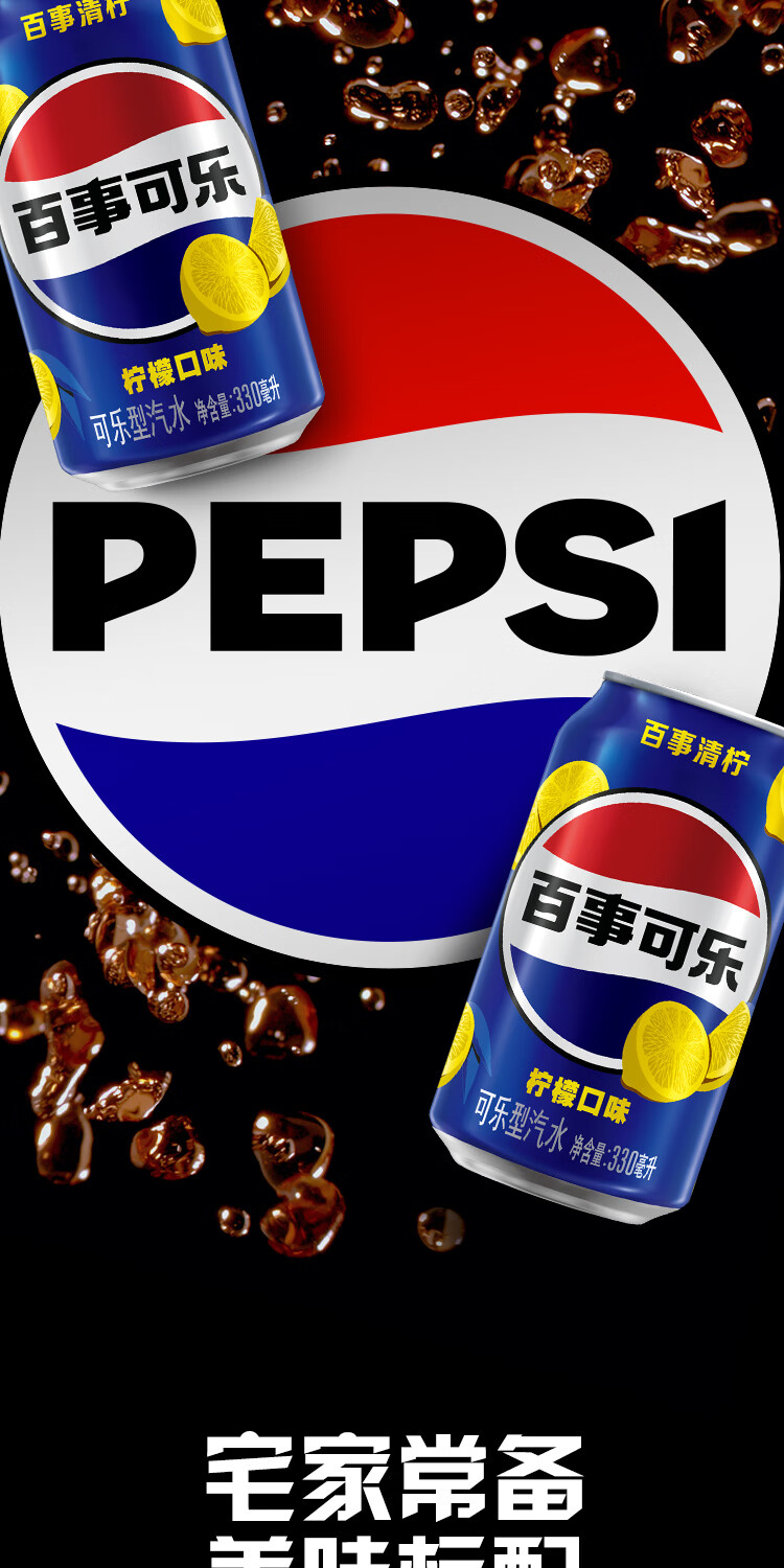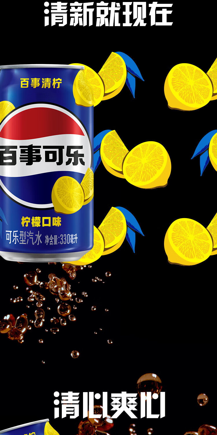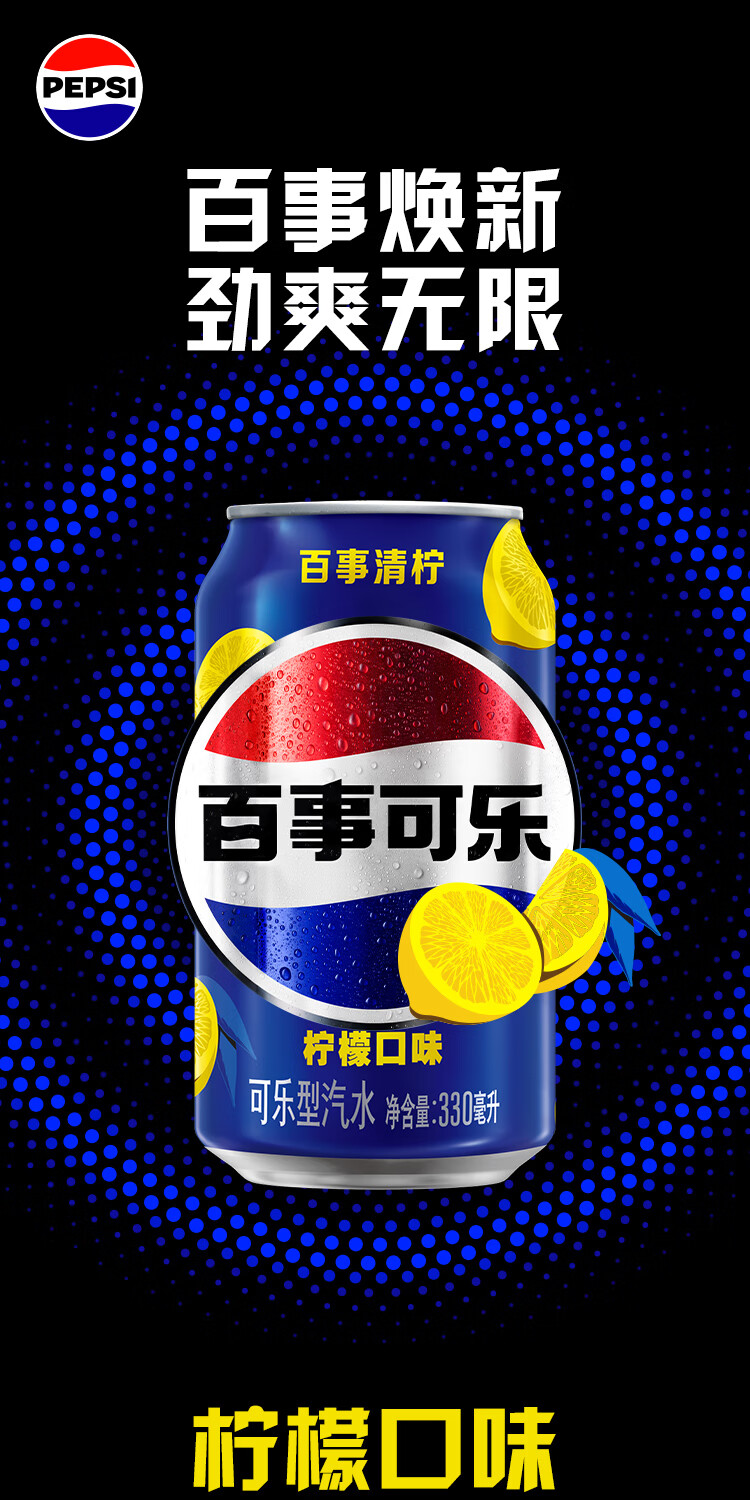 百事可乐Pepsi 清柠味碳酸饮料汽水 330ml*24听 整箱装
