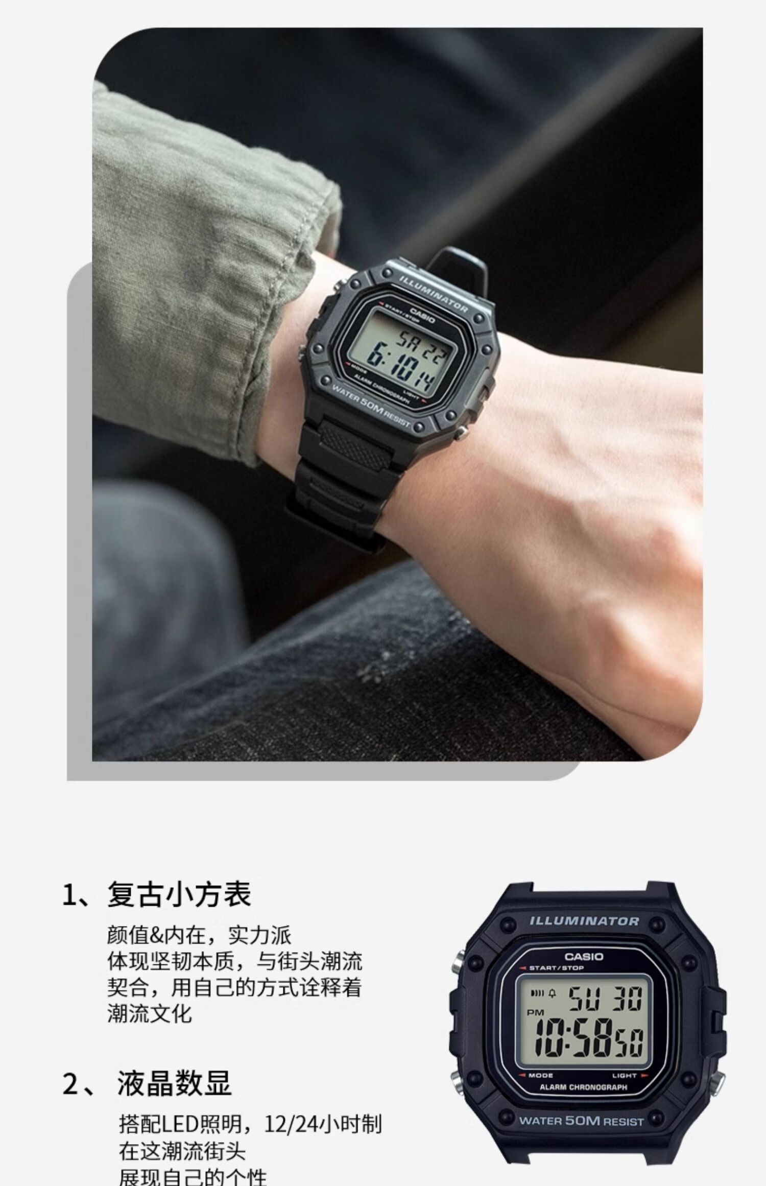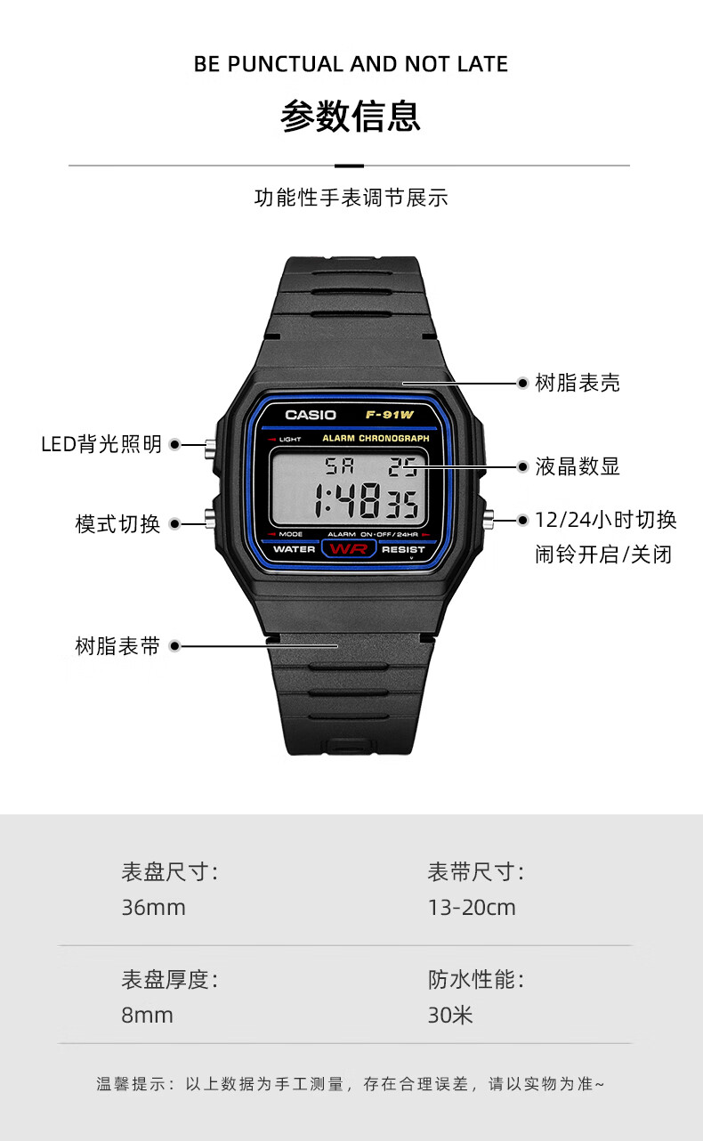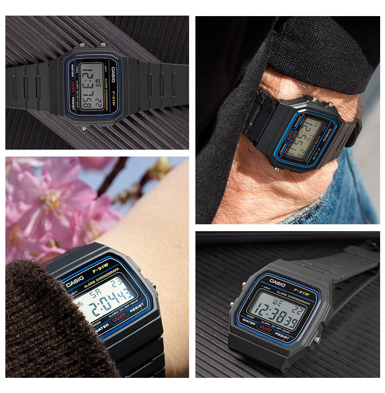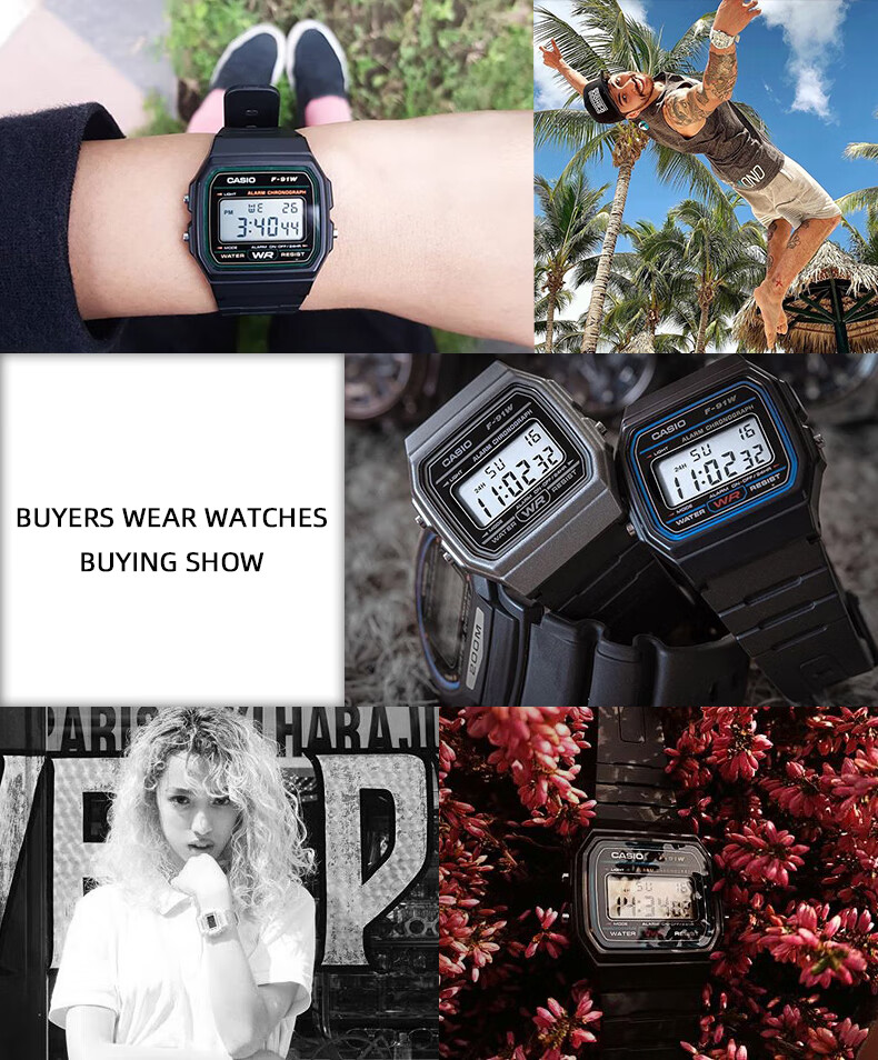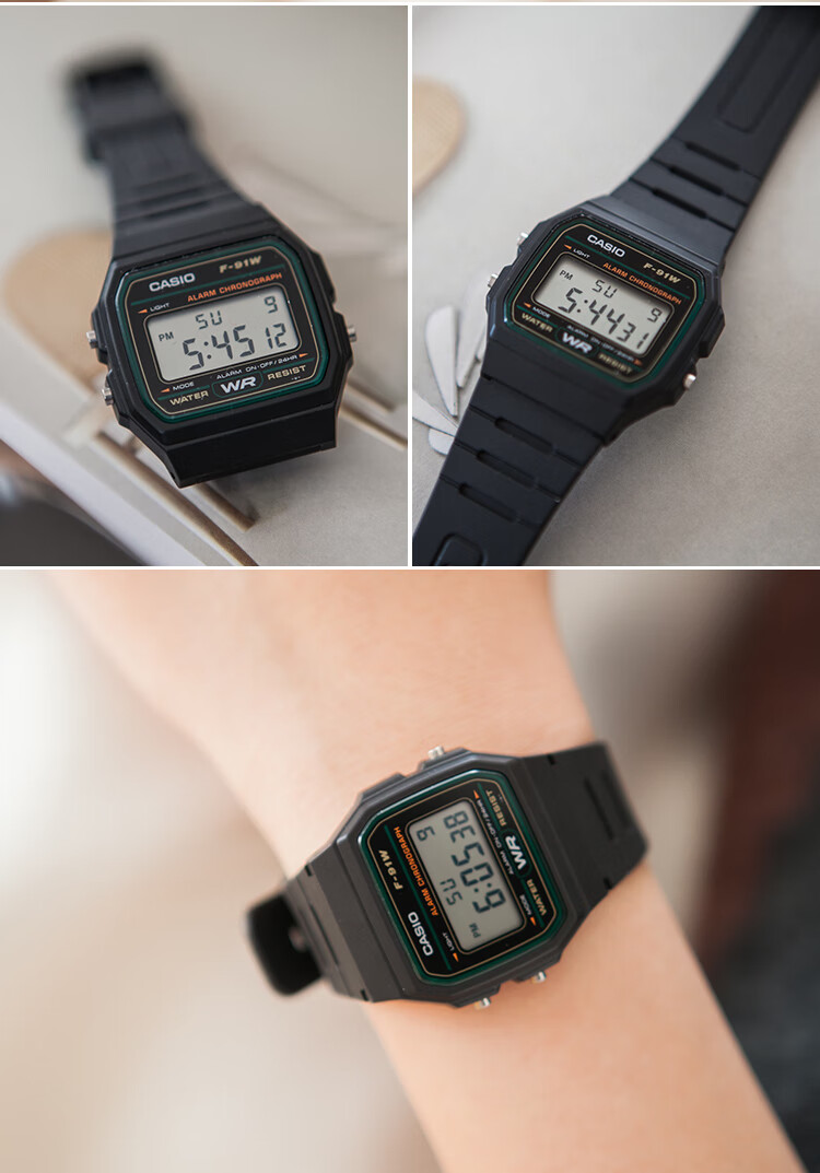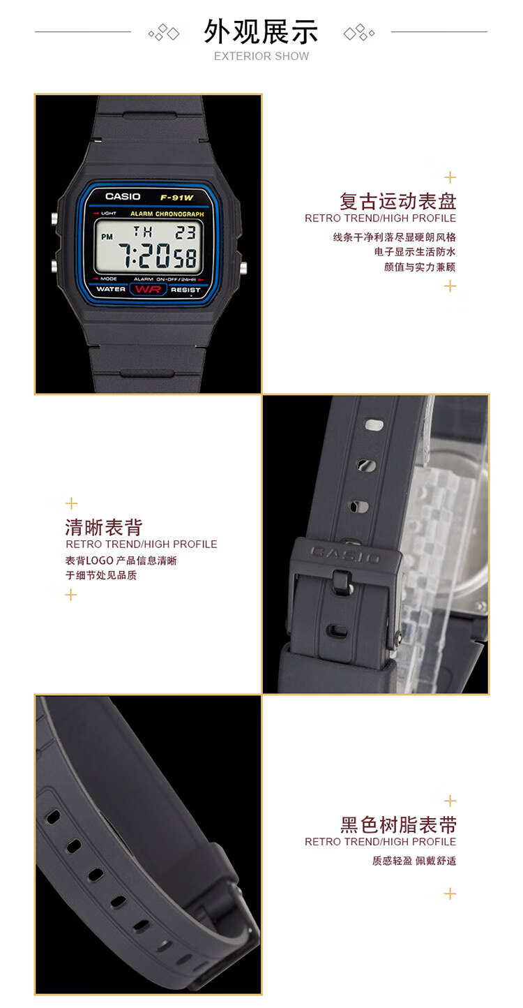 卡西欧(CASIO)手表男复古小方块运动防水学生男女f91w系列手表F-91W-1D