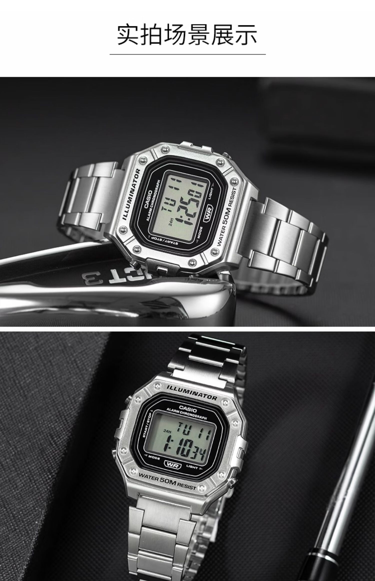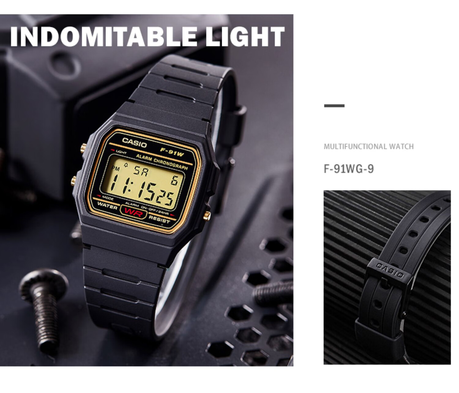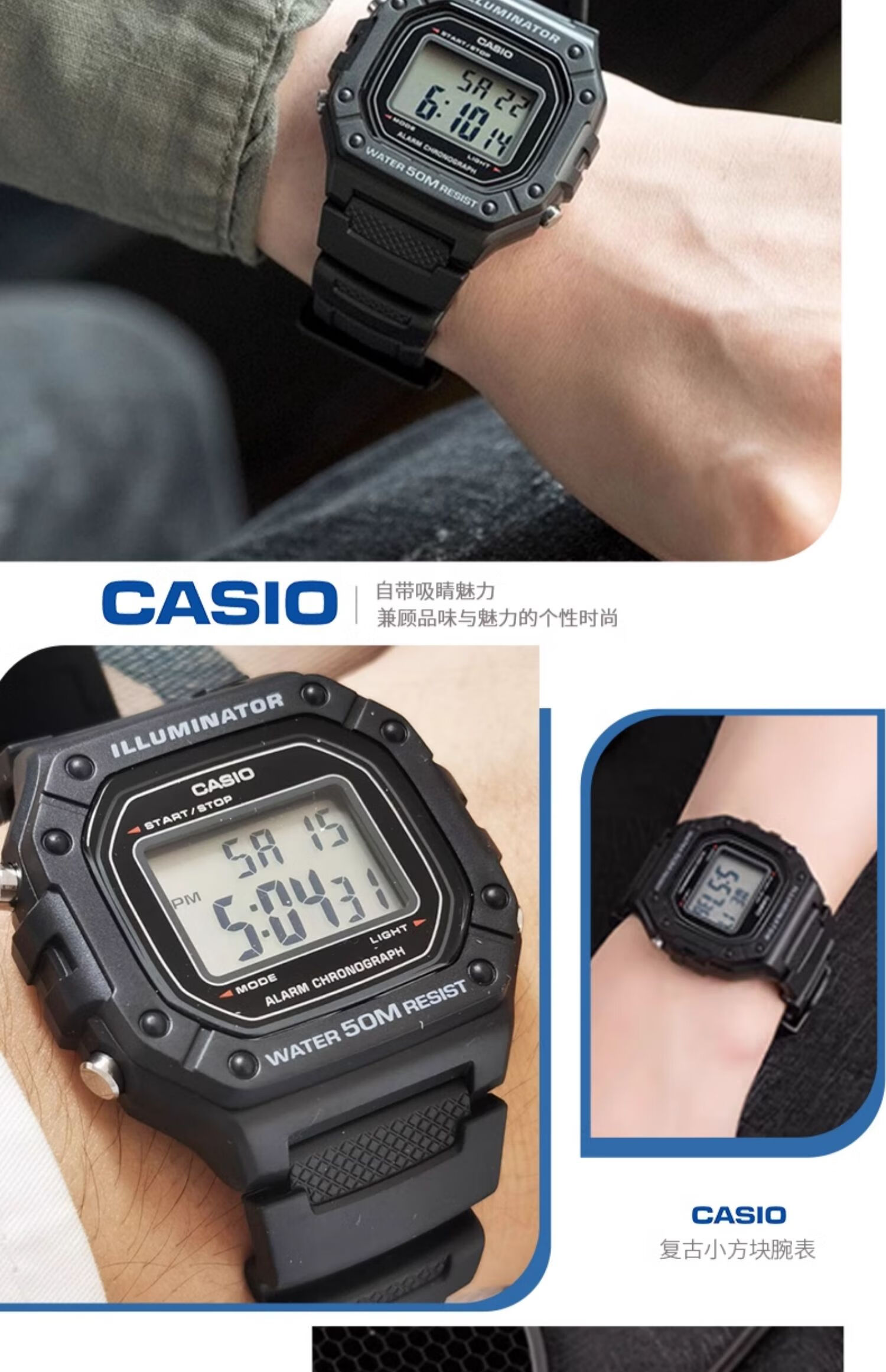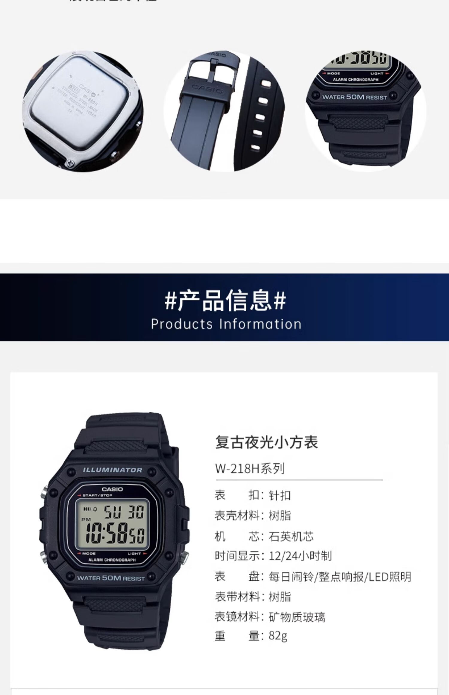 卡西欧(CASIO)手表男复古小方块运动防水学生男女f91w系列手表F-91W-1D