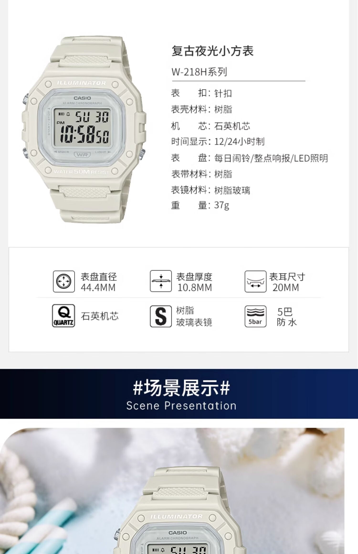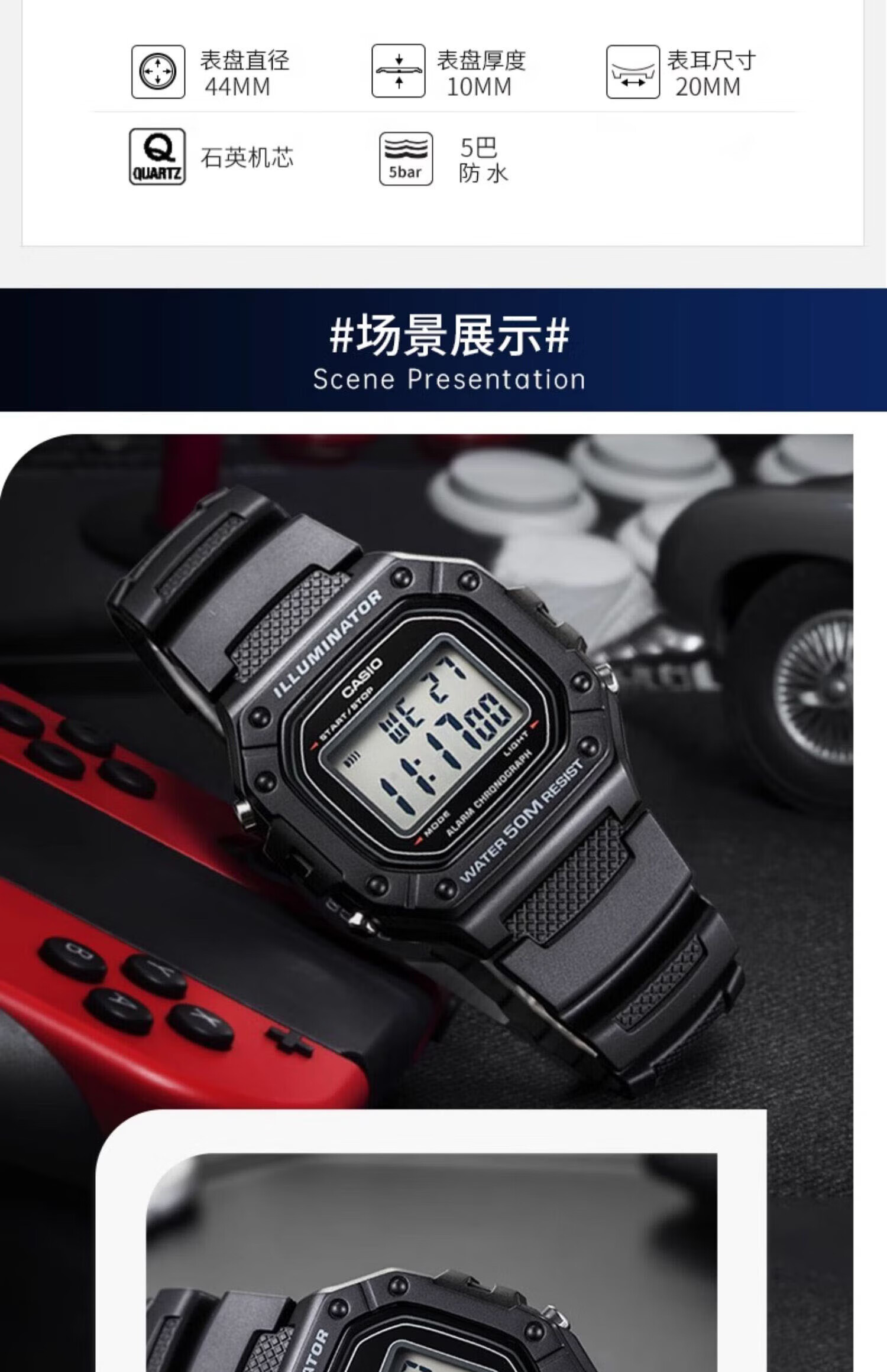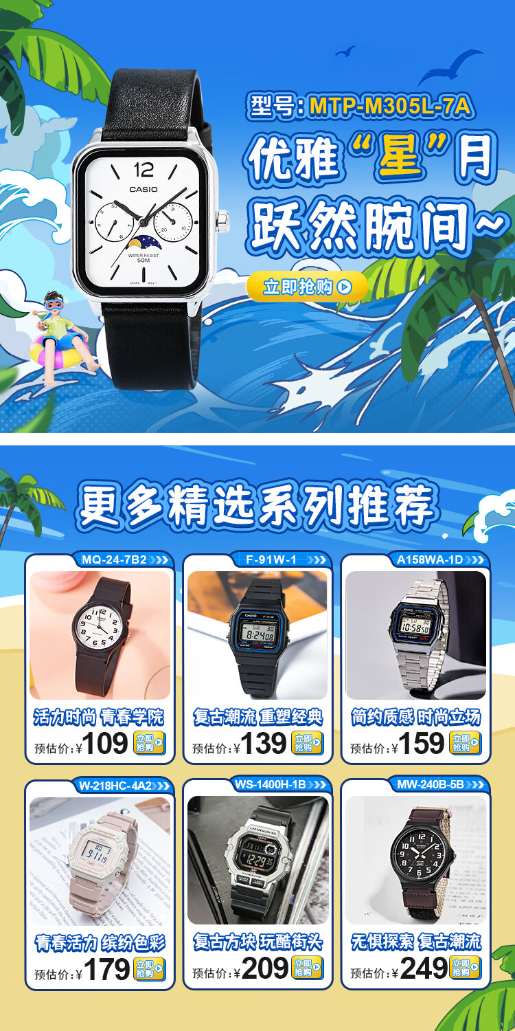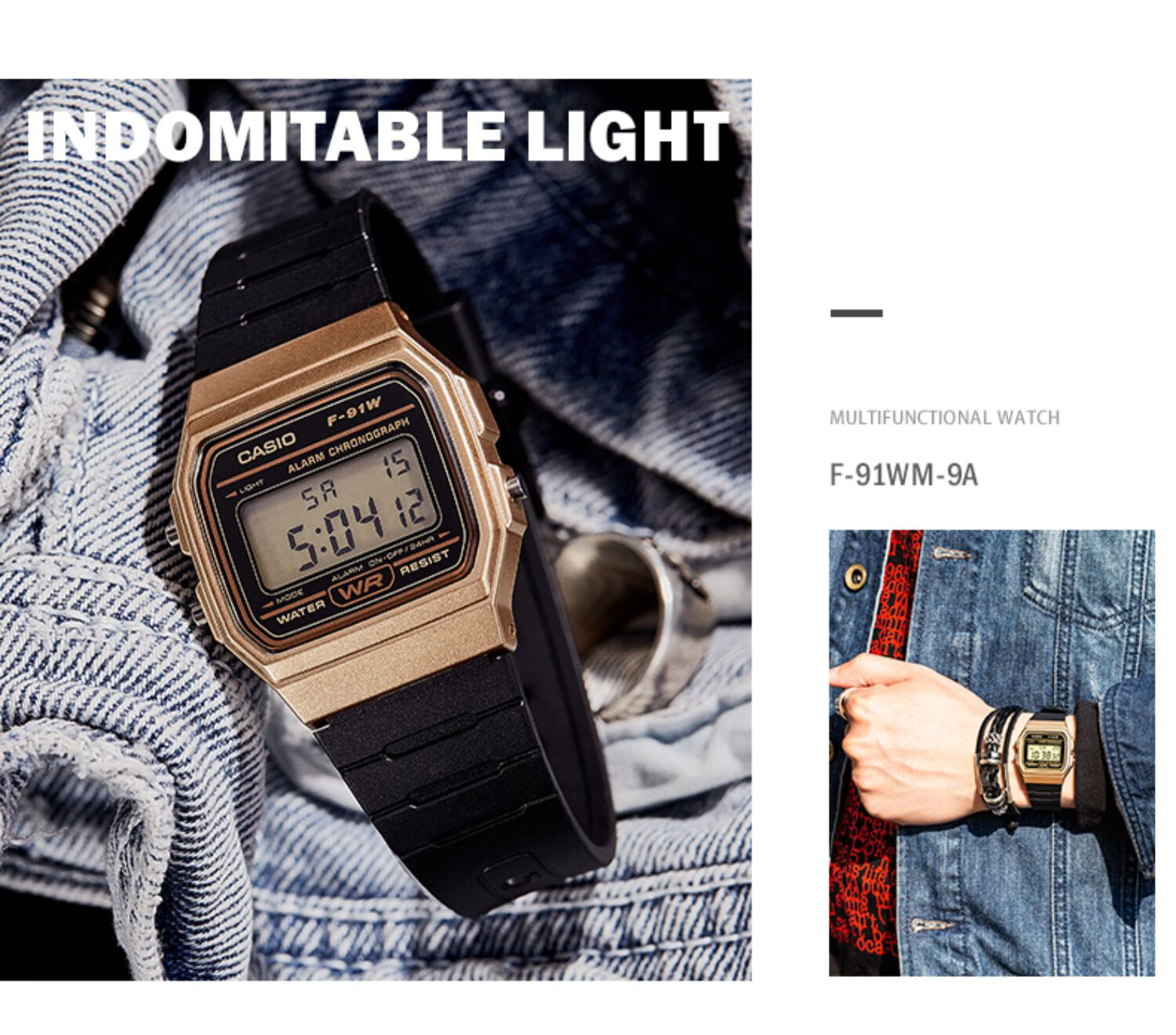 卡西欧(CASIO)手表男复古小方块运动防水学生男女f91w系列手表F-91W-1D