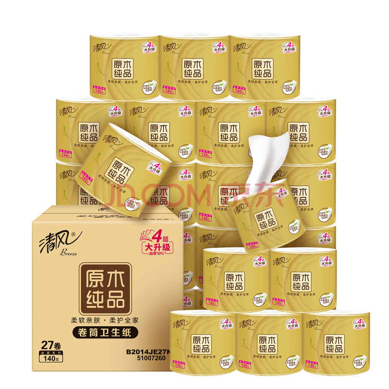 清风【李昀锐同款】有芯卷纸原木金装 4层加厚140克*27卷 卫生纸 整箱