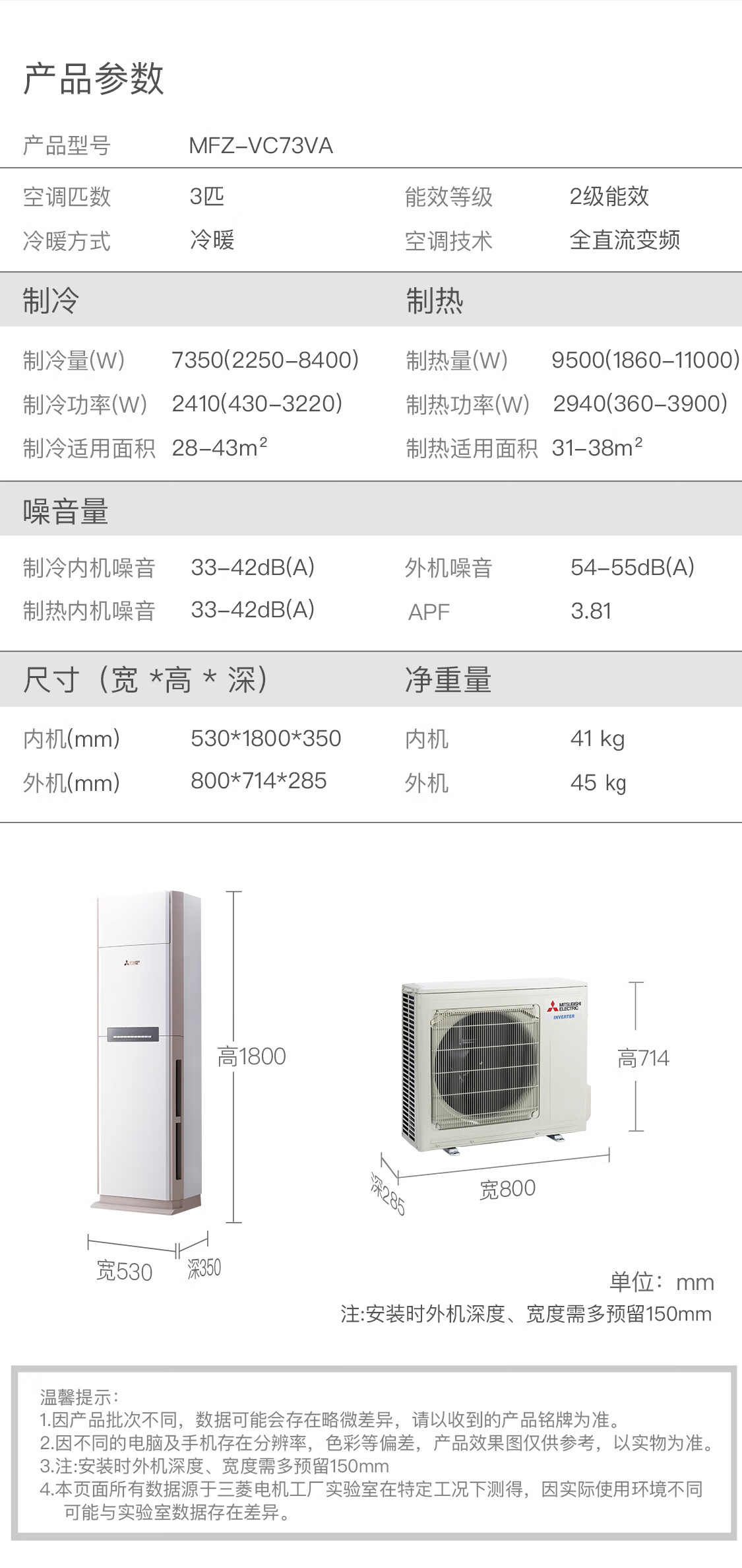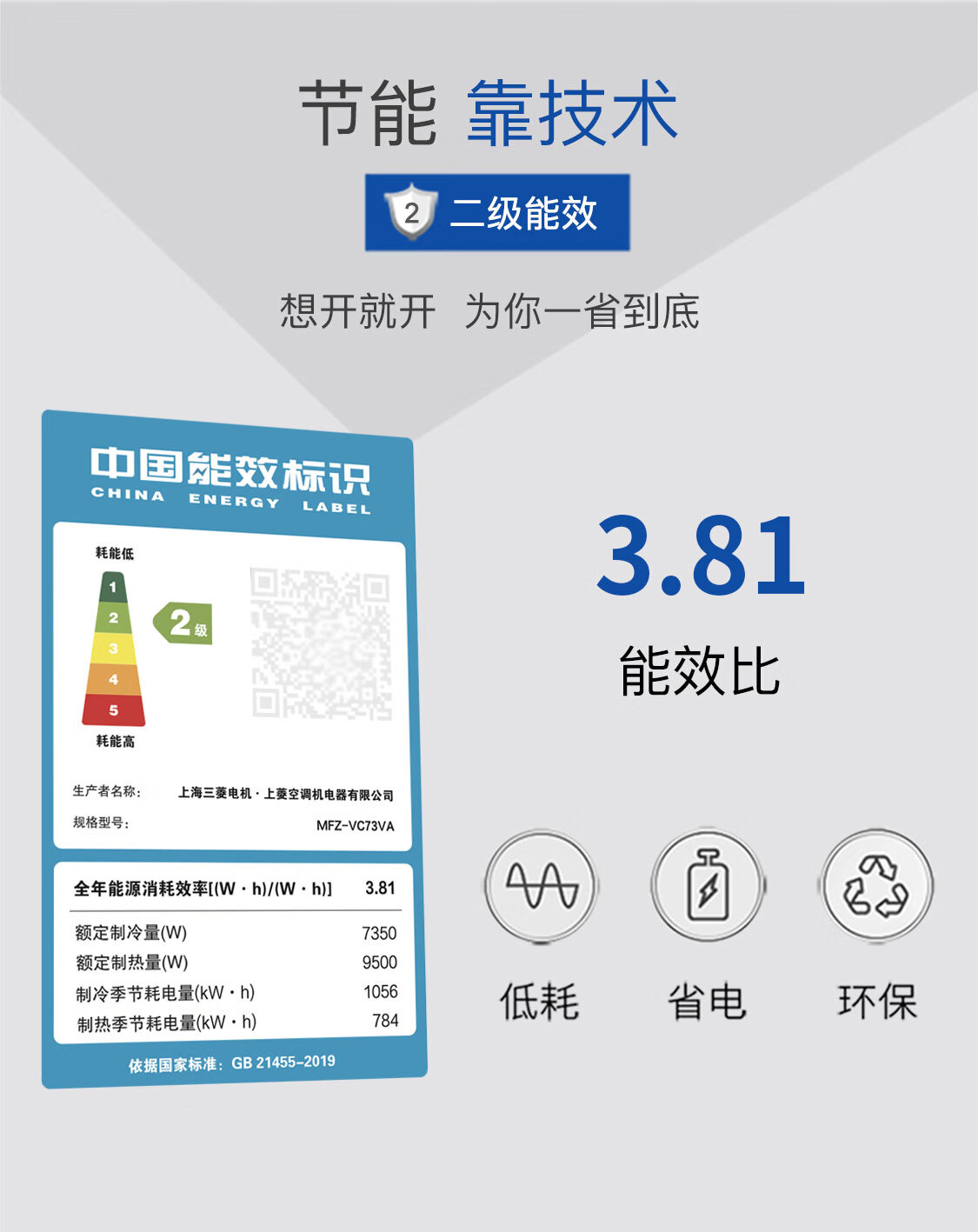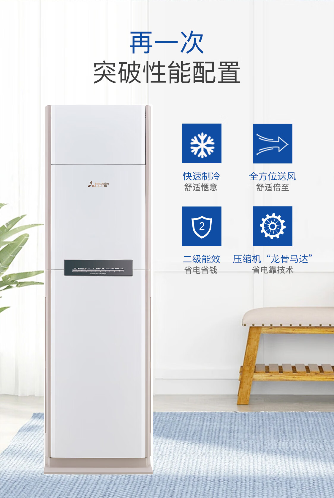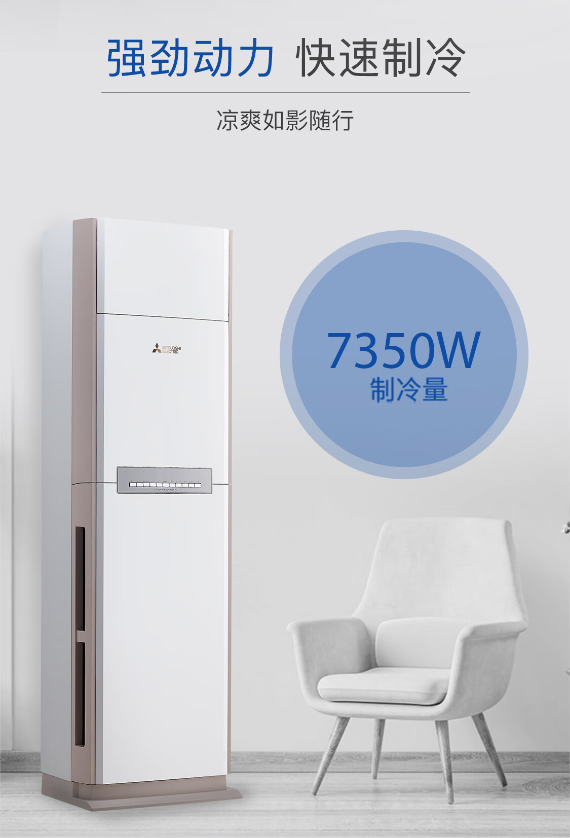 三菱电机空调 VC系列 3匹 新二级能效 纯铜管 远距离送风 省电立式柜机 MFZ-VC73VA