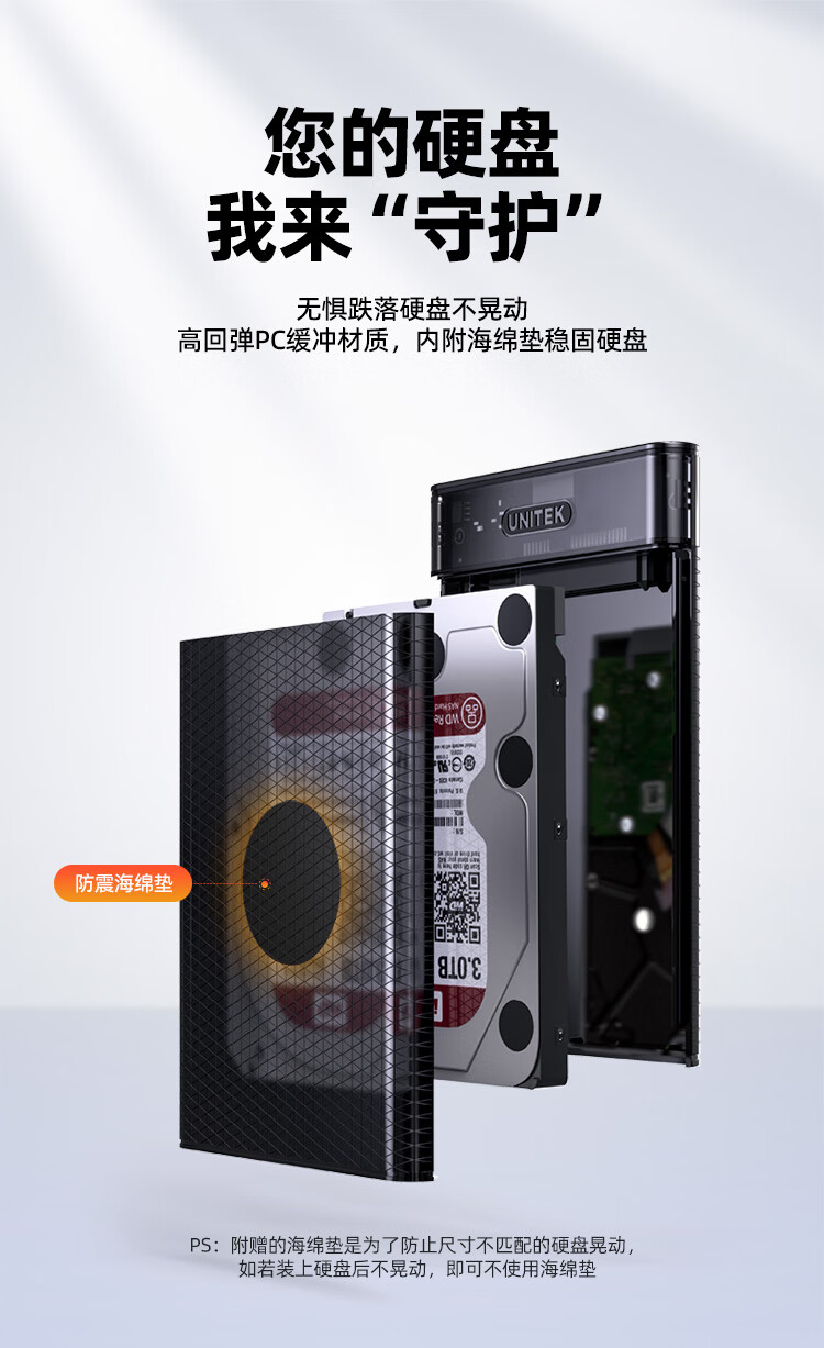 优越者移动硬盘盒2.5英寸SATA转USB3.0笔记本电脑外接壳固态机械ssd硬盘盒子读取外设产品透明黑S103EBK