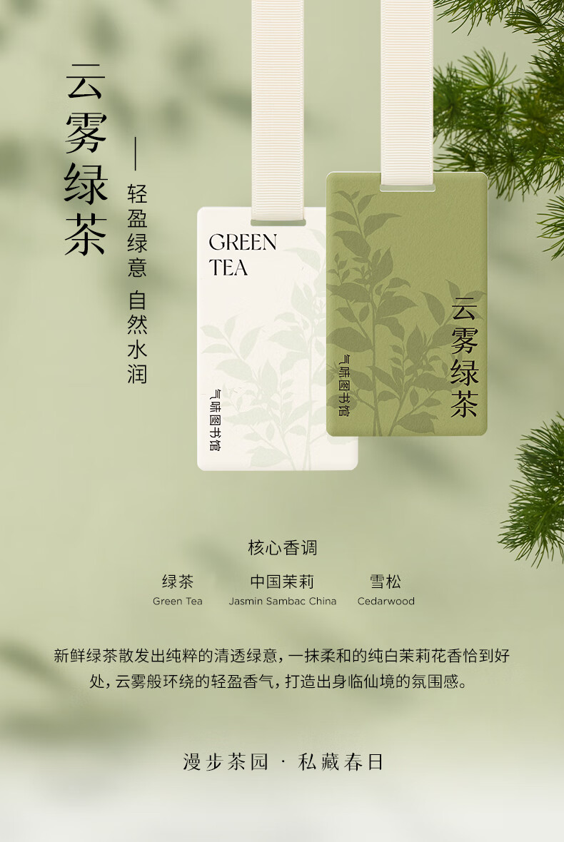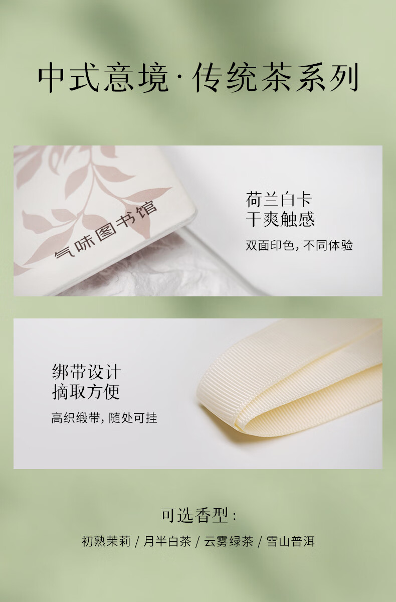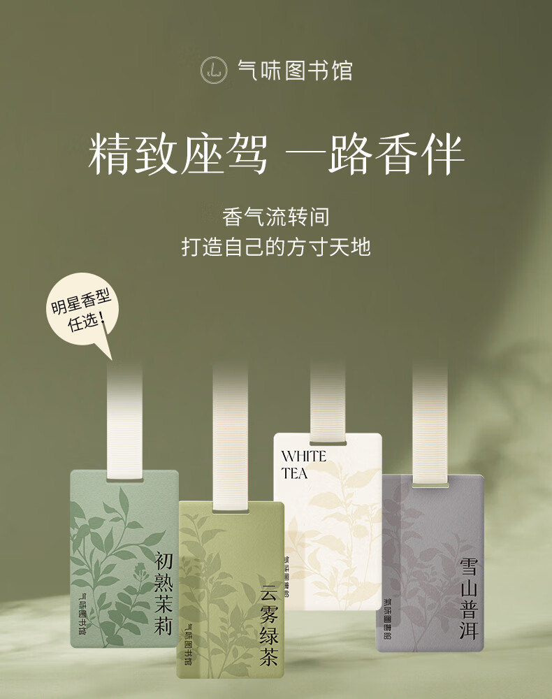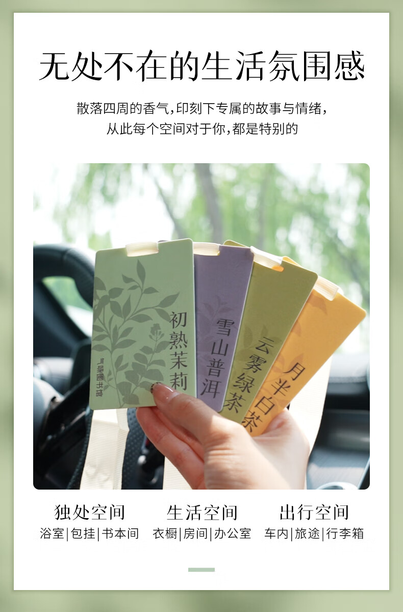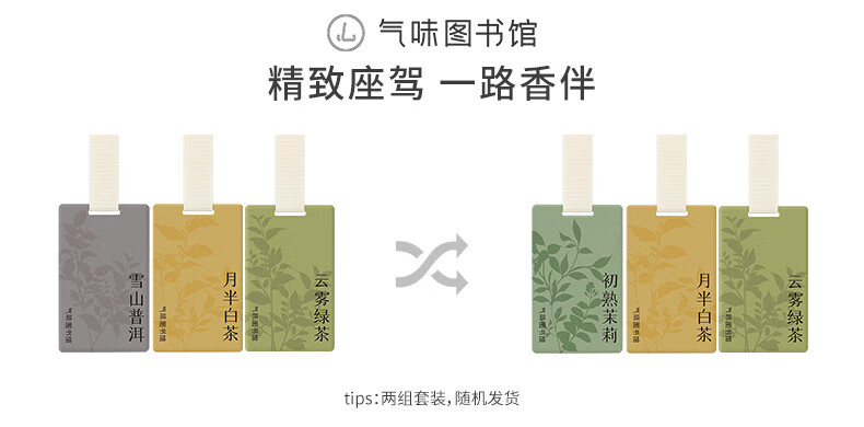 气味图书馆车载香水卡片车载香薰汽车摆件衣柜香薰3片装 绿茶+普洱+白茶