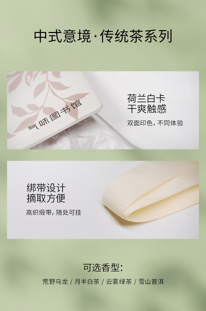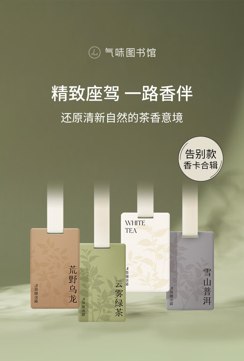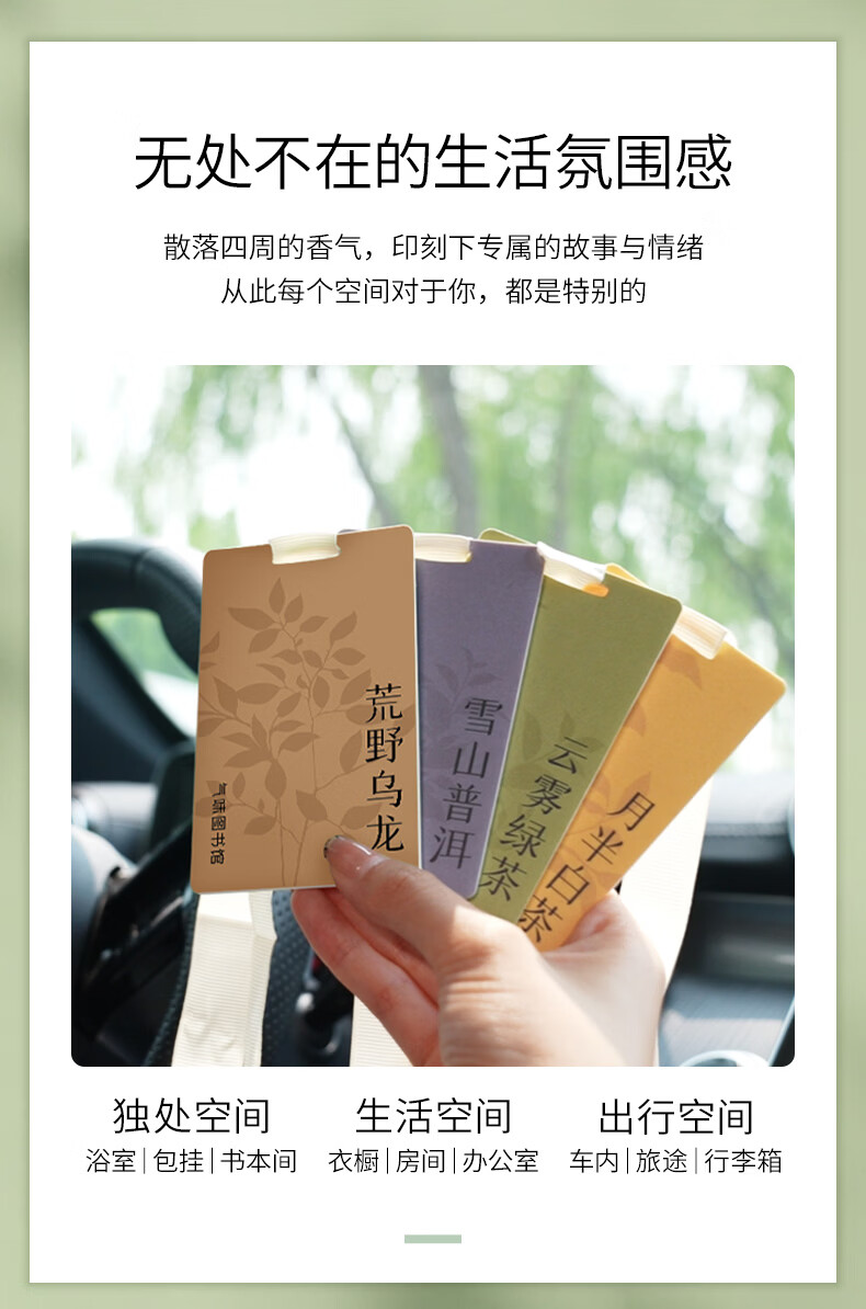 气味图书馆车载香水卡片车载香薰汽车摆件衣柜香薰3片装 绿茶+普洱+白茶香氛